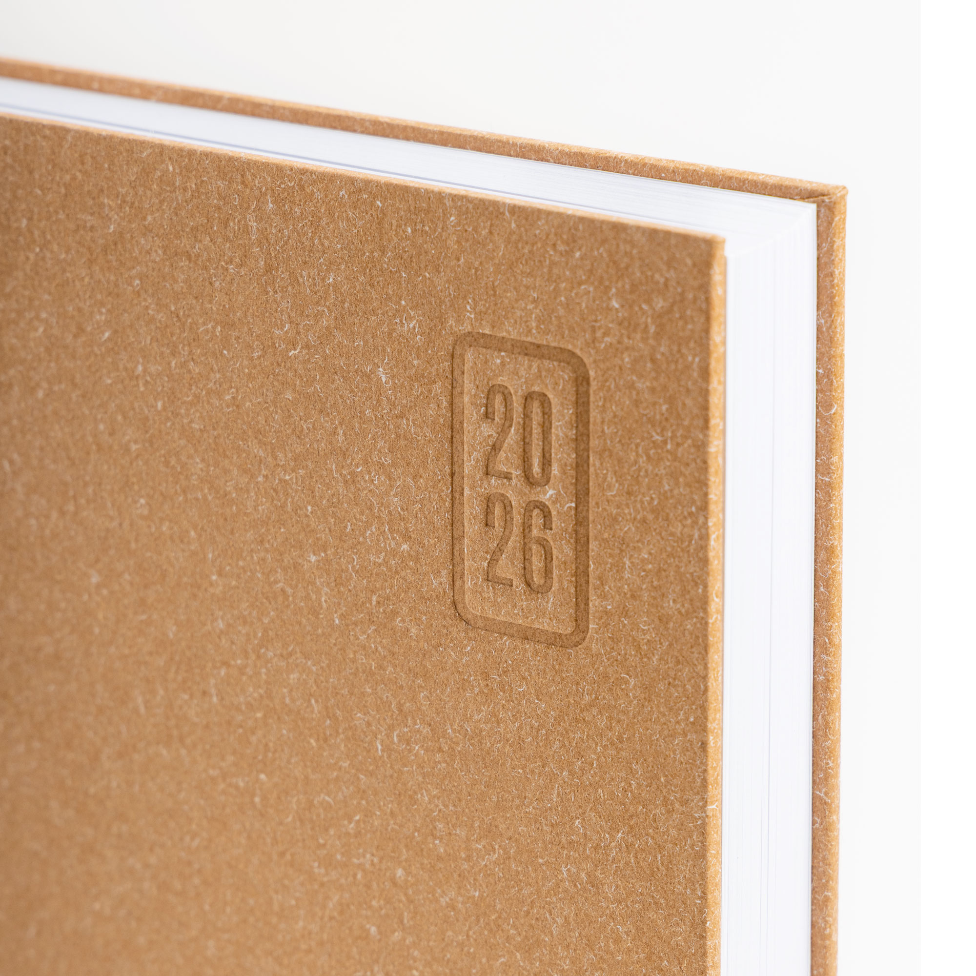 Atlanta – Agenda diária A5. Capa rígida em papel craft e fitilho. Com 336 páginas , em papel branco 70gr e certificação FSC (papel proveniente de florestas geridas de forma responsável). Idiomas principais: Português e Espanhol. No interior inclui: espaço para preenchimento de dados pessoais; calendário completo de 2026 e semestre de 2025 e 2027; feriados em lista; plano de férias; plano diário 2026 e espaço para preenchimento de contactos importantes (de A-Z).