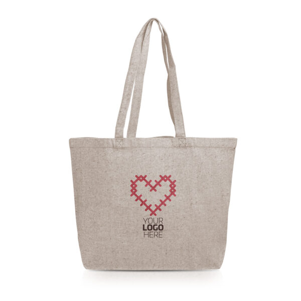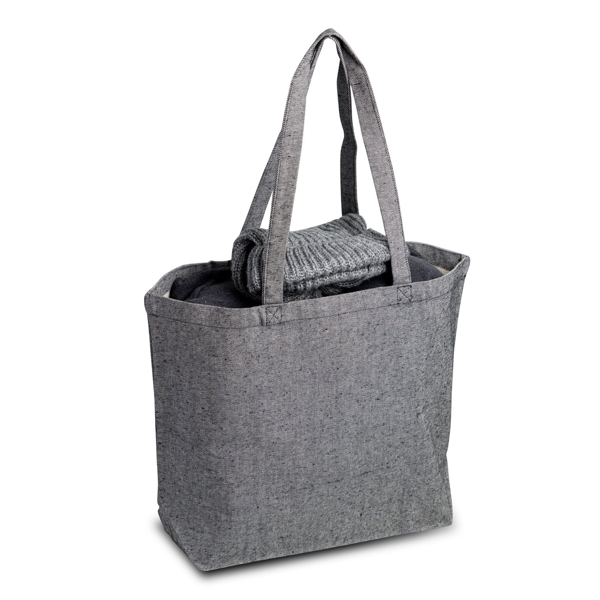 Saco reciclado de alta gramagem. Possuí um fole de 16 cm, o que o torna espaçoso e ideal para um dia no shopping. Um saco ecológico, na moda e conveniente.