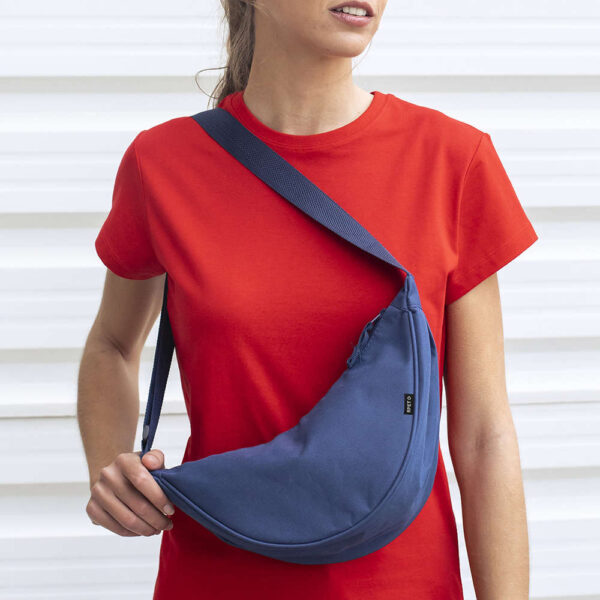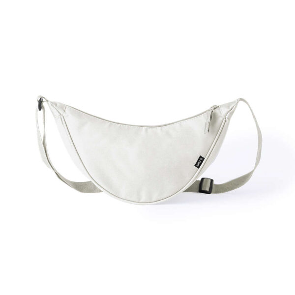 Bolsa tira-colo de cintura de design elegante fabricada em poliéster RPET 600D. Conta com um bolso central, fecho de correr, com duplo puxador e uma fita ajustável. Além disso, conta com etiqueta distintiva de RPET. Disponível numa variada gama de cores. Apresentada individualmente numa bolsa reciclada.