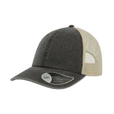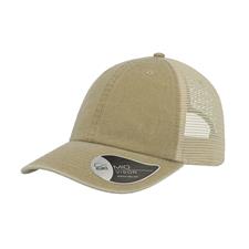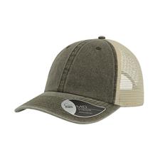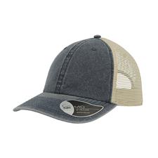 A popular forma do boné de camionista transformado num boné com um estilo ocasional e vintage. Os bonés tingidos com pigmento são coloridos usando um pó especial capaz de criar um efeito deslavado. Este método não tinge na realidade o material, mas colora apenas a camada exterior, ao contrário dos corantes tradicionais que penetram completamente no tecido. Tecido principal 100% Algodão chino, traseira e laterais 100% Poliéster. Viseira meio curva, 6 painéis, ilhoses costuradas, 8 costuras na pala, etiqueta removível, fecho em velcro.