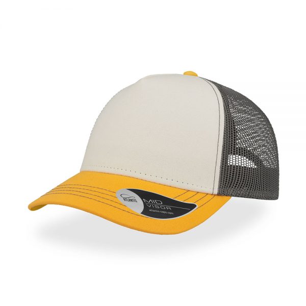Ideal para momentos 100% divertidos. Graças às cores vivas, à viseira curta e ao seu estilo glamoroso, o material de lona torna-o perfeito para passeios à noite. Tem 4 costuras a contrastar na pala, 5 painéis, visor semi-curvo, lateral e traseira em rede, fecho em PVC atrás. Etiqueta removível. Frente 100% Algodão, traseira 100% Poliéster.