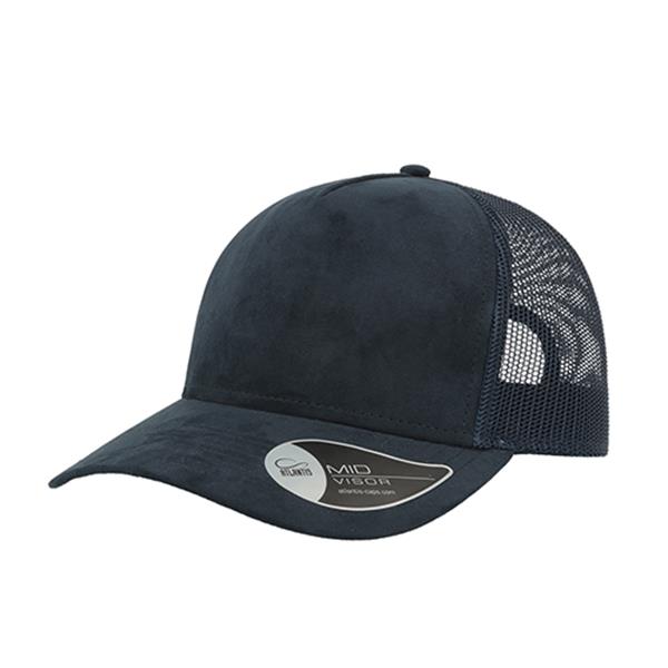 A leve imitição de camurça, fornece ao popular boné de camionista um toque de estilo glamoroso. A camurça remonta ao tempo dos Índios americanos que usaram esta técnica para produzir as suas roupas e acessórios. A tendência da camurça tornou-se moda nos Anos 60 e 70. 100% Poliéster. Viseira meio curva, traseira em rede, 5 painéis, 8 costuras na pala, etiqueta removível, fecho em PVC.