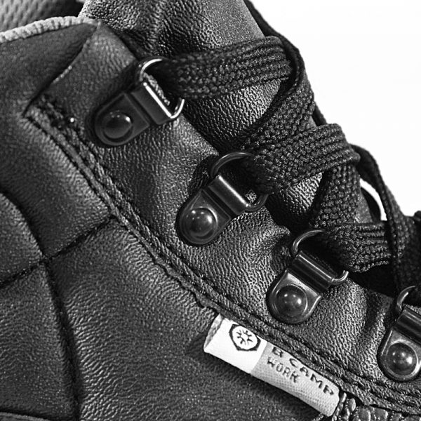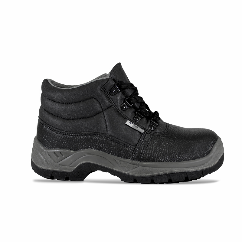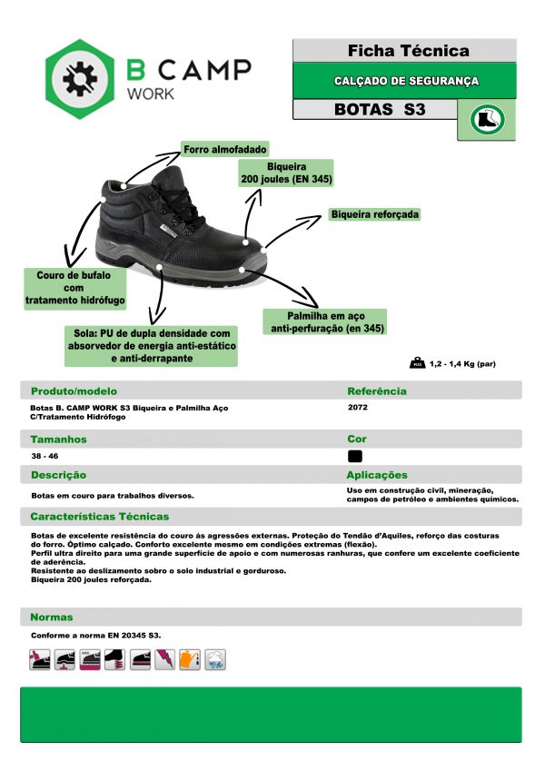 Biqueira de aço, Palmilha de aço, Sola resistente a fogo e óleo, Resistência a ácidos, Anti-estático e anti-derrapante, Tacão resistente ao choque.