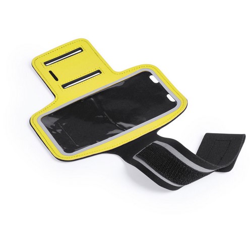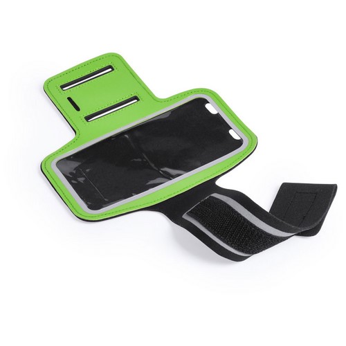 Pulseira desportiva confortável projetada para dispositivos com ecran grande, em PU macio de cores vivas. Com fecho reflector e ajustável com velcro, bolso para chaves e frente em PVC com função de táctil.