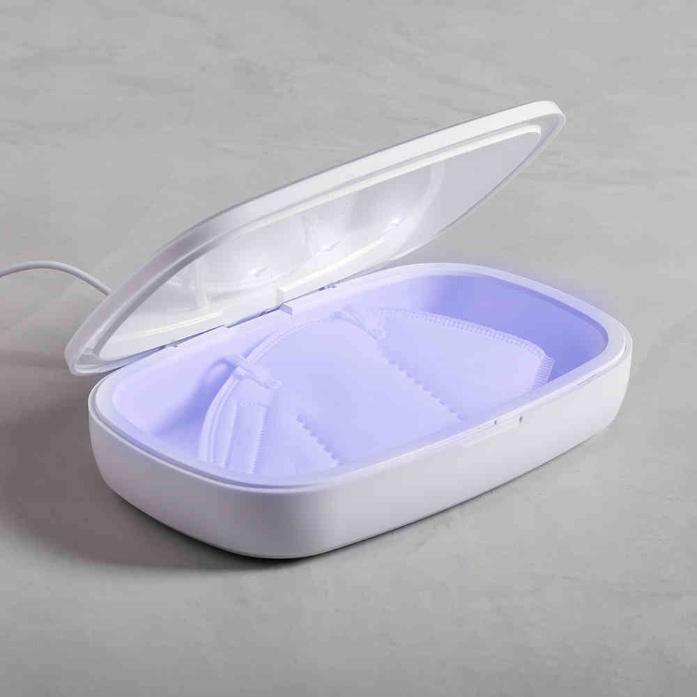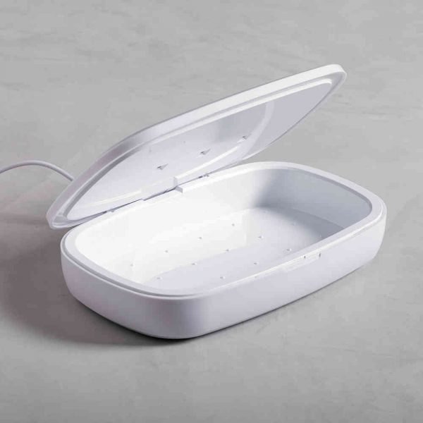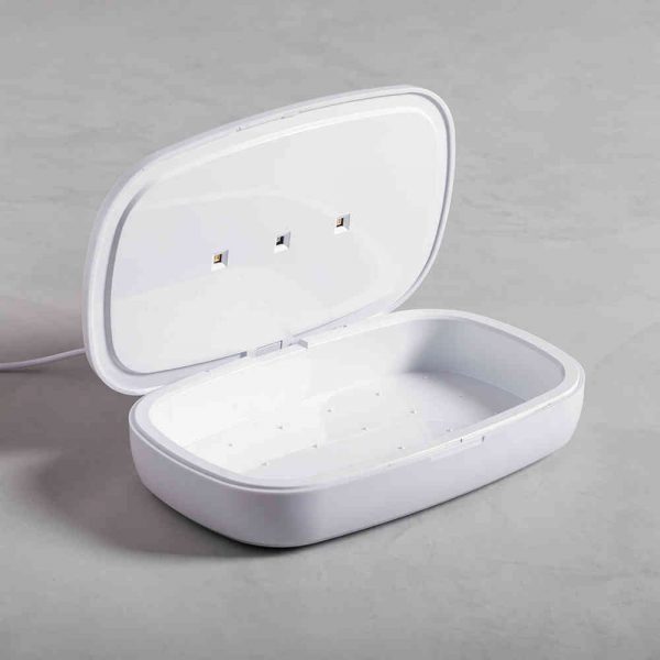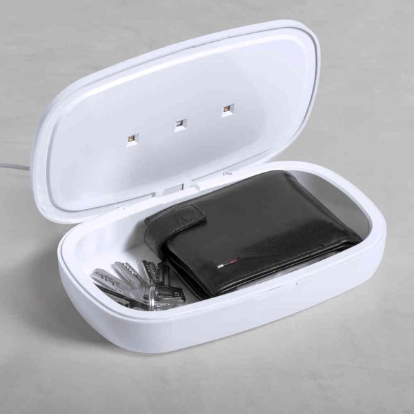Caixa esterilizadora de luz ultravioleta tipo C. Especialmente desenhada para a eliminação de microorganismos e bactérias em objectos de uso quotidiano como o smartphone, chaves, óculos…