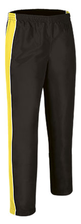 100% poliéster. Tecido acetato dual-flock 250 grs/m2. Acabamento acanelado interior. Cintura com elástico. Cordaõ na cintura (só tamanhos adulto). 2 bolsos na cintura. Bandas laterais com vivo.
