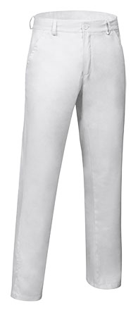 65% poliéster, 35% algodão. Tecido sarja 200 grs/m2. Fecho zip e botão. 2 bolsos na cintura. 1 bolso traseiro