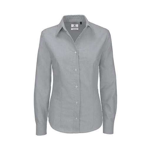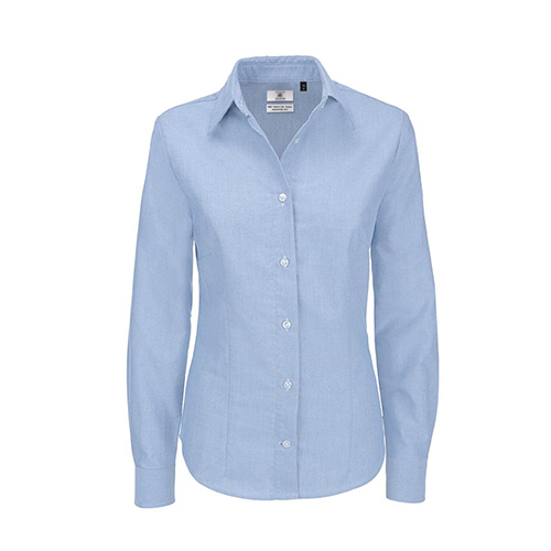 Camisa B&C Oxford manga comprida Senhora – 70% Algodão escovado/ 30% Poliéster