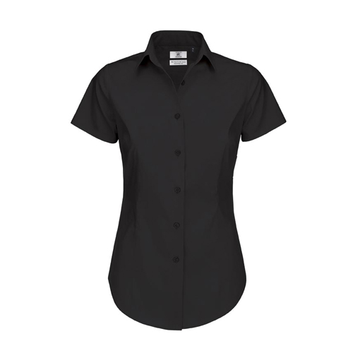 Camisa Manga Curta B&C Black Tie Senhora – 97% Algodão escovado / 3% Elastano – Popeline