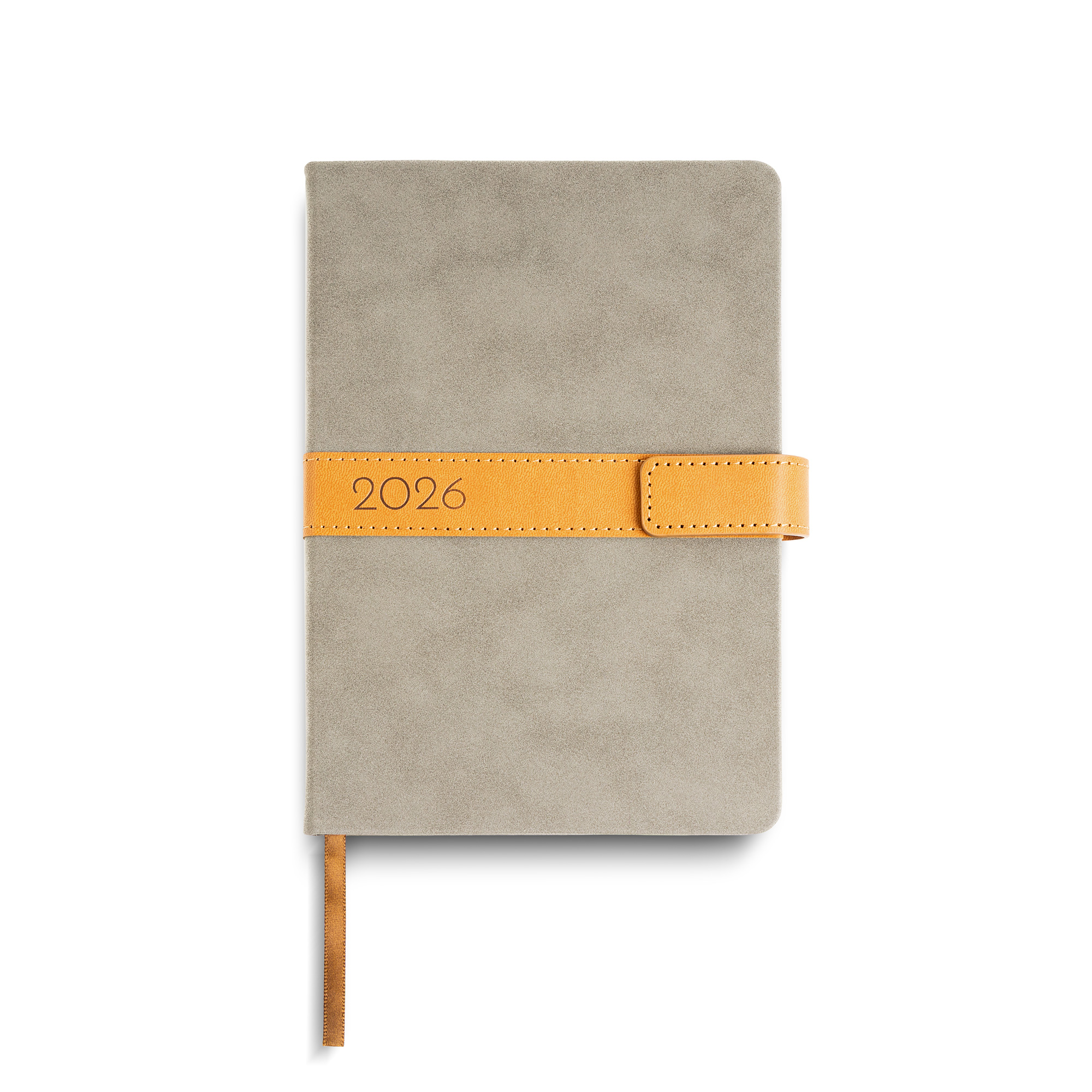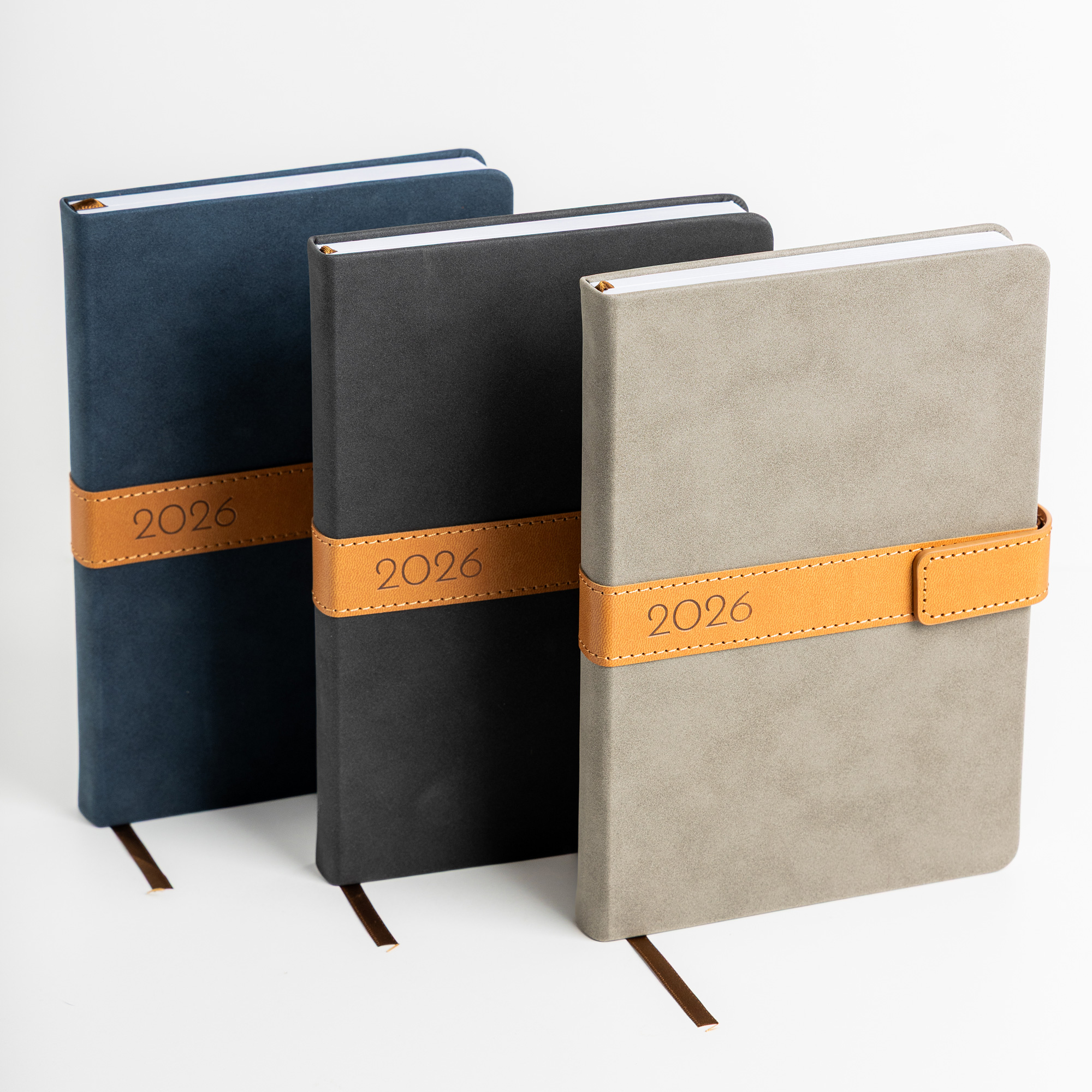 Cancún – Agenda diária A5 com capa em nubuck e fecho magnético em PU.