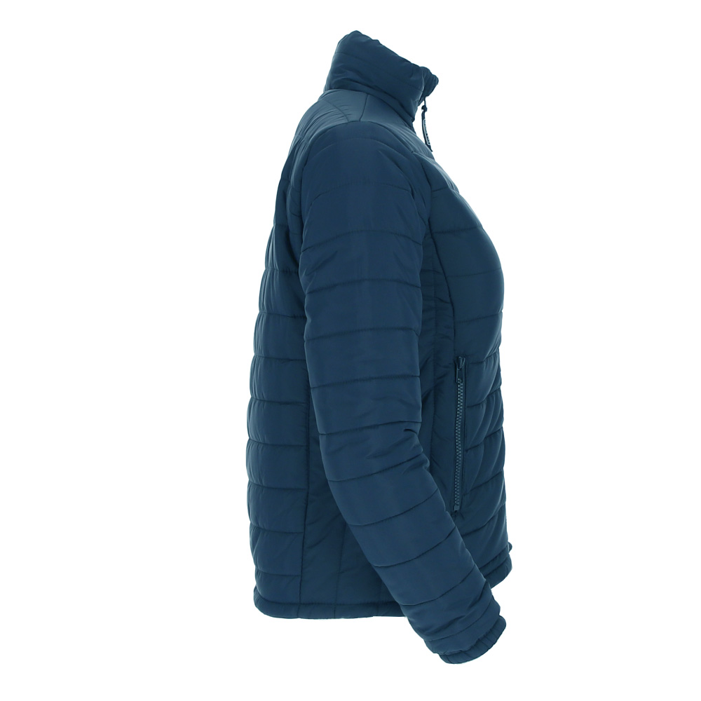 Casaco para mulher, corte ajustado e efeito térmico Confecionado em tecido Loft alcochoado com exterior plano repelente à água, forro interior e acolchoado para isolamento térmico extra Gola alta com fecho completo incluindo protetor de queixo para maior conforto Cintura reta com cordão regulador e stoppers para um melhor ajuste Dois bolsos verticais na cintura com fecho de correr para ter tudo acessível Acesso com fecho na parte interior das costas para facilitar a marcação: serigrafia, transfer, vinil, bordados, cosidos Ideal como têxteis publicitários e roupa casual.