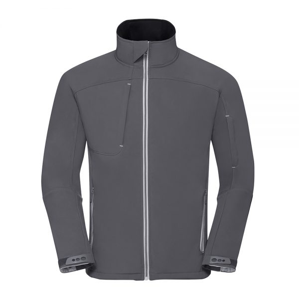 O casaco softshell Bionic é o mais recente membro da família softshell da Russell Europa. Este excelente casaco softshell com seu design intemporal é altamente resistente à água e ao vento. O Bionic-Finish® Eco permite que o revestimento seja repelente à água de uma forma ecológica. Perfeito para evocar uma imagem corporativa inteligente para aqueles que estão à procura de um casaco moderno para cobrir sua aparência corporativa.