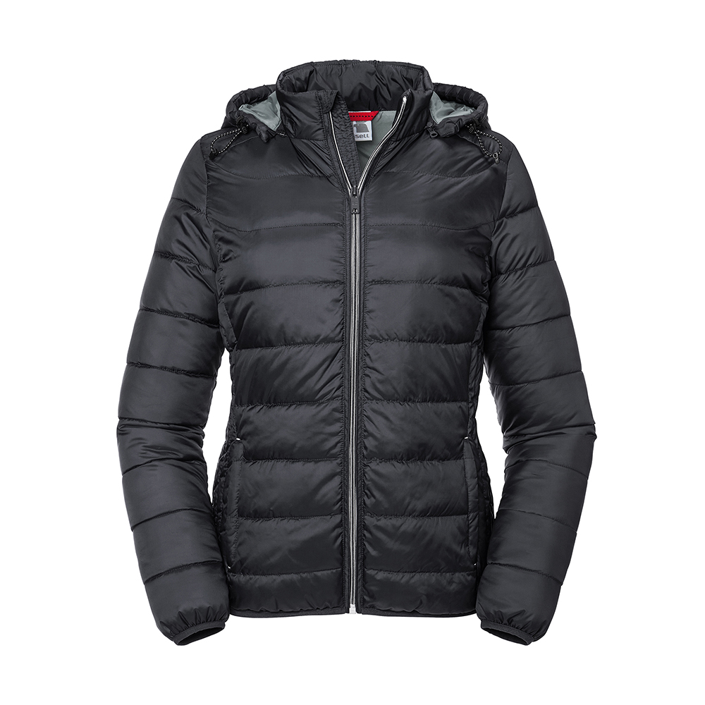 O casaco Nano com capuz, da Russell, é o casaco perfeito para a sua equipa. Em tecido DWR de alto desempenho, tratado com Aquapel™ da Nanotex®. Sem fluoreto ou perfluorocarbonetos. Preenchimento ecológico e eficiente de Dupont™ Sorona®. Gola elevada com 2 botões de pressão e aba interna para proteger do vento. Fechos de correr, forro e detalhes em contraste. Possui 2 bolsos laterais e 1 bolso interno com fecho de correr. Costuras elásticas nas mangas e no cós. Capuz ajustável e removível, com cursores bloqueantes. 100% Poliéster. 66g/m2