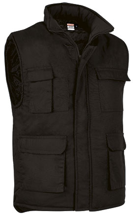 Gola alta com fecho. Amplia superfície para estampar nas costas. Largo no baixo das costas.