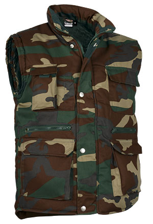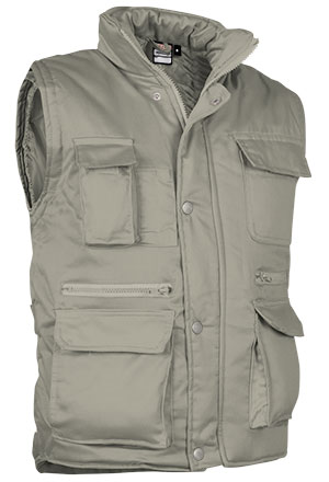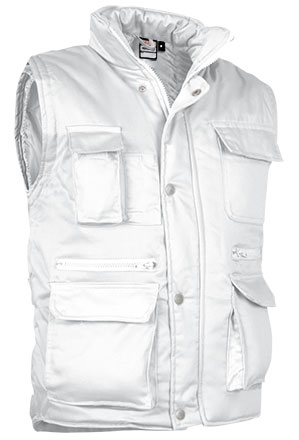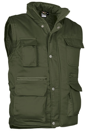 8 bolsos exteriores. 1 bolso interior. 2 acessos caneta. 1 bolso no peito direito para telemóvel.