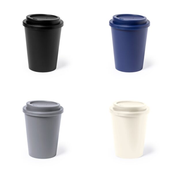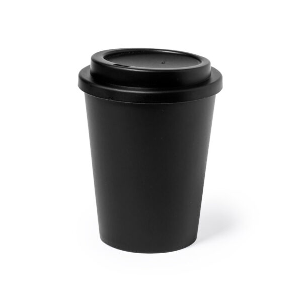Copo térmico fabricado em resistente PP de dupla parede e 300ml de capacidade.