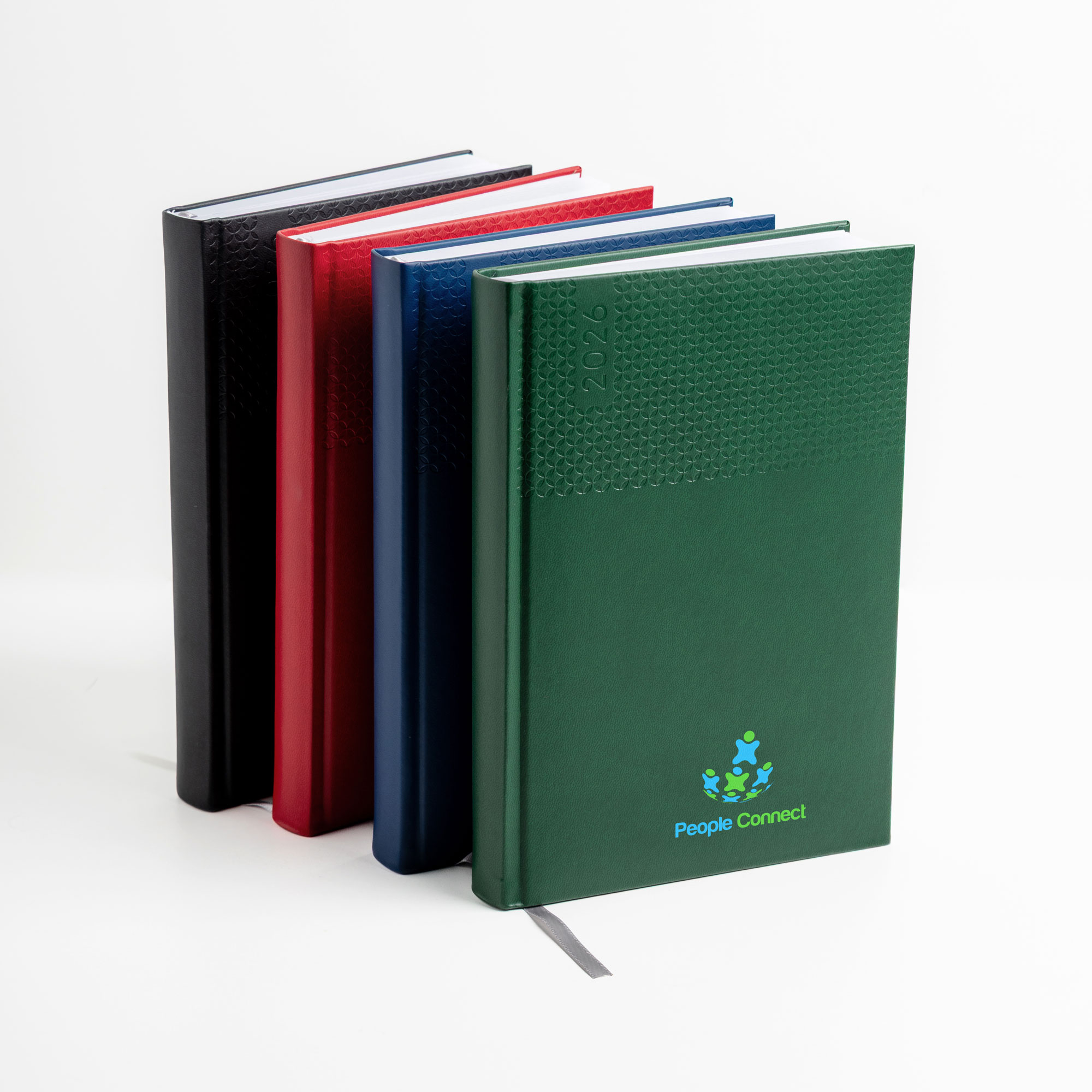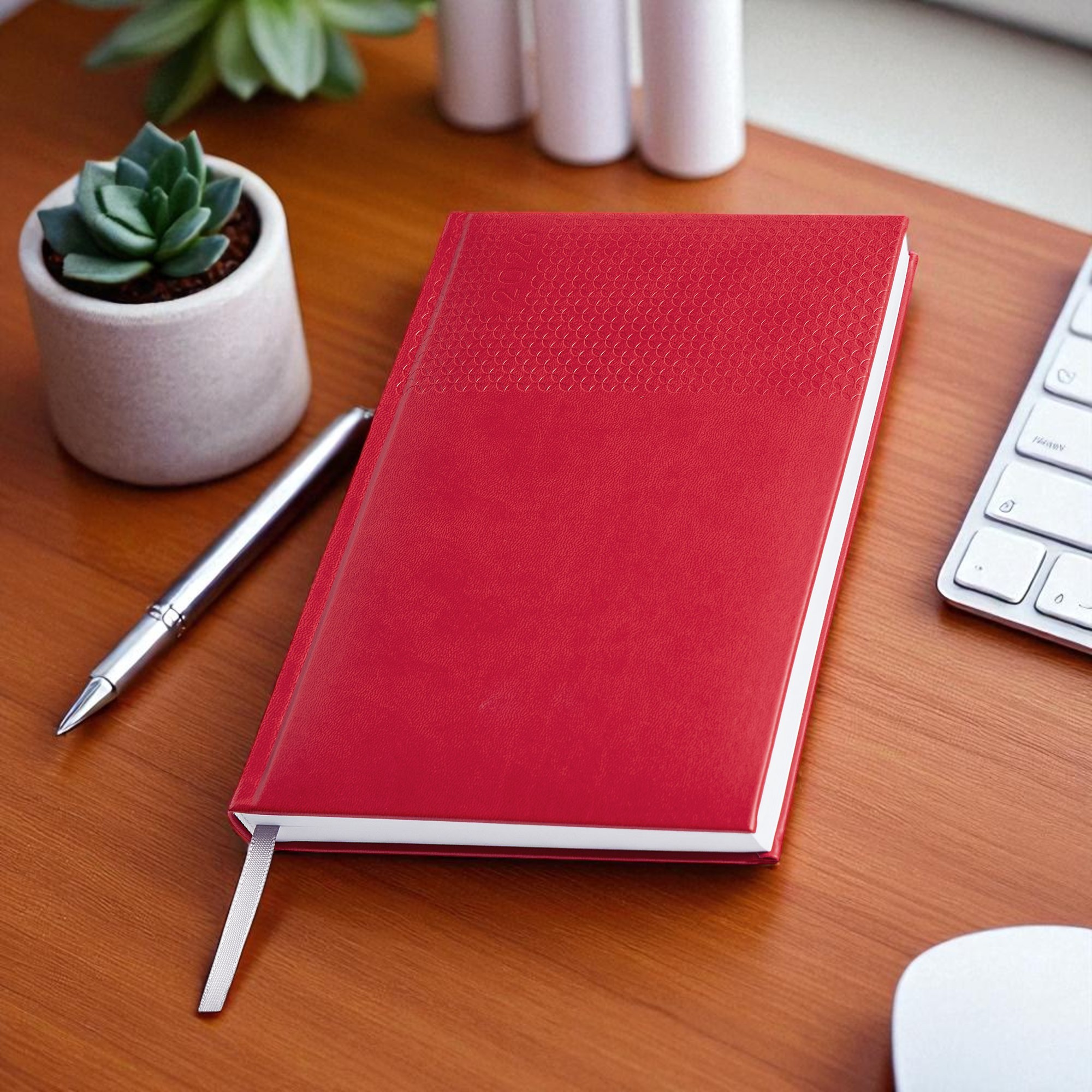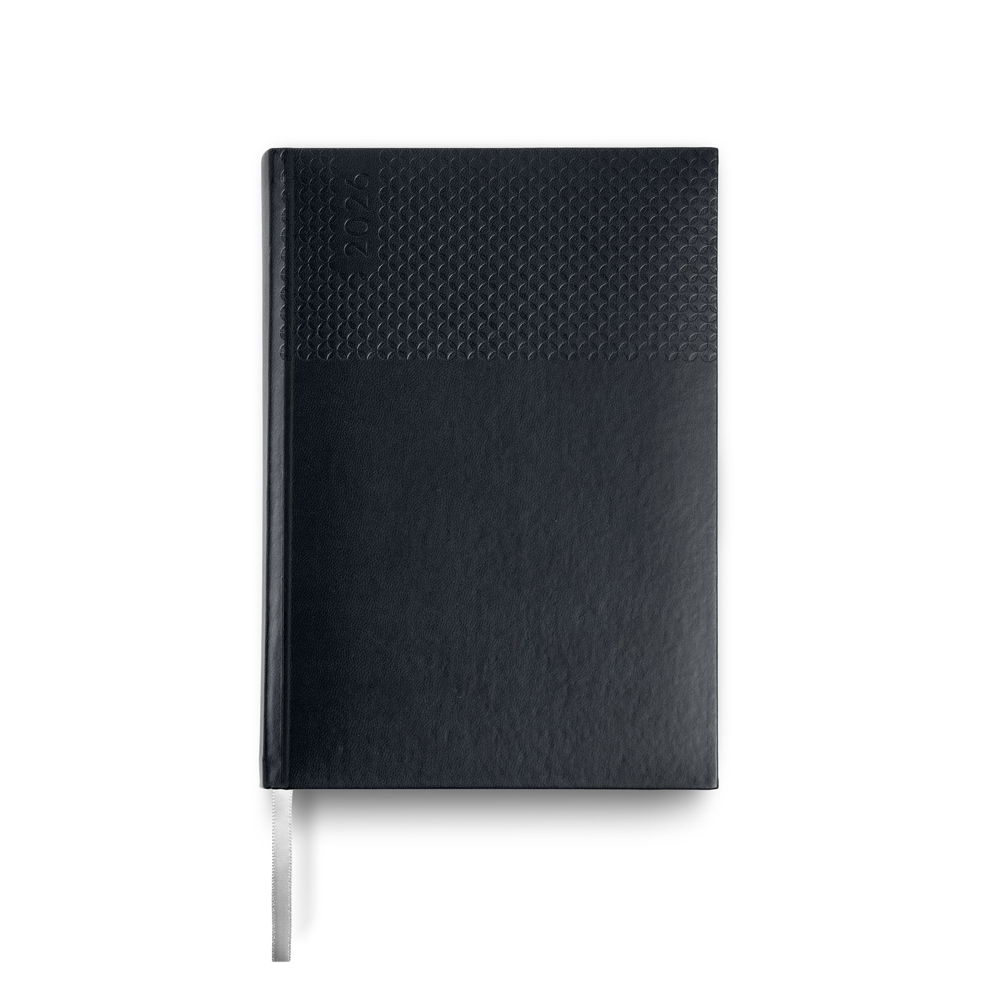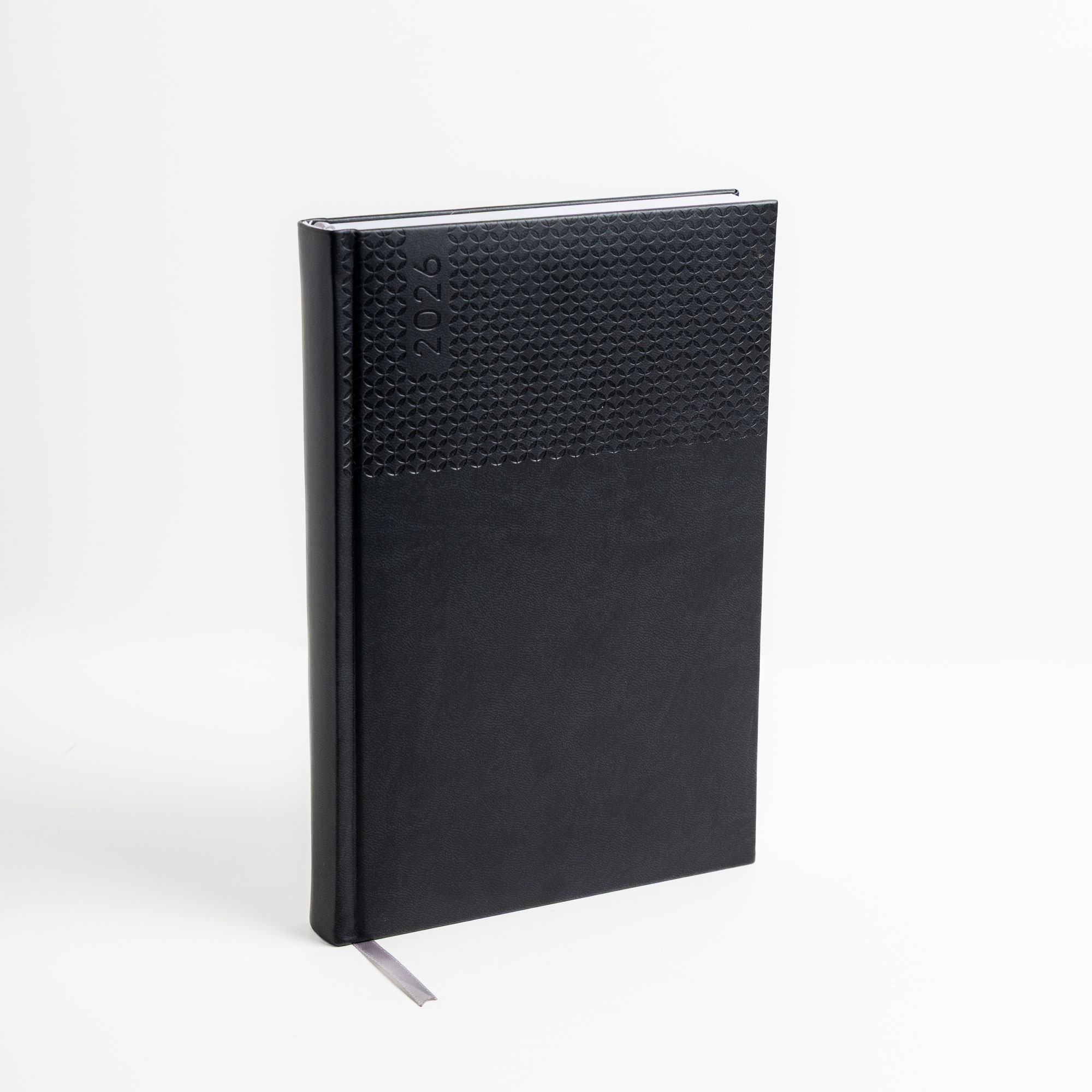 Edessa – Agenda diária A5. Capa em PU e fitilho prateado.
