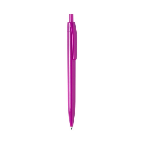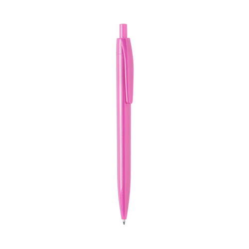 Esferográfica de mecanismo pulsador, de design monocromático em várias de cores vivas e brilhantes. Tinta azul