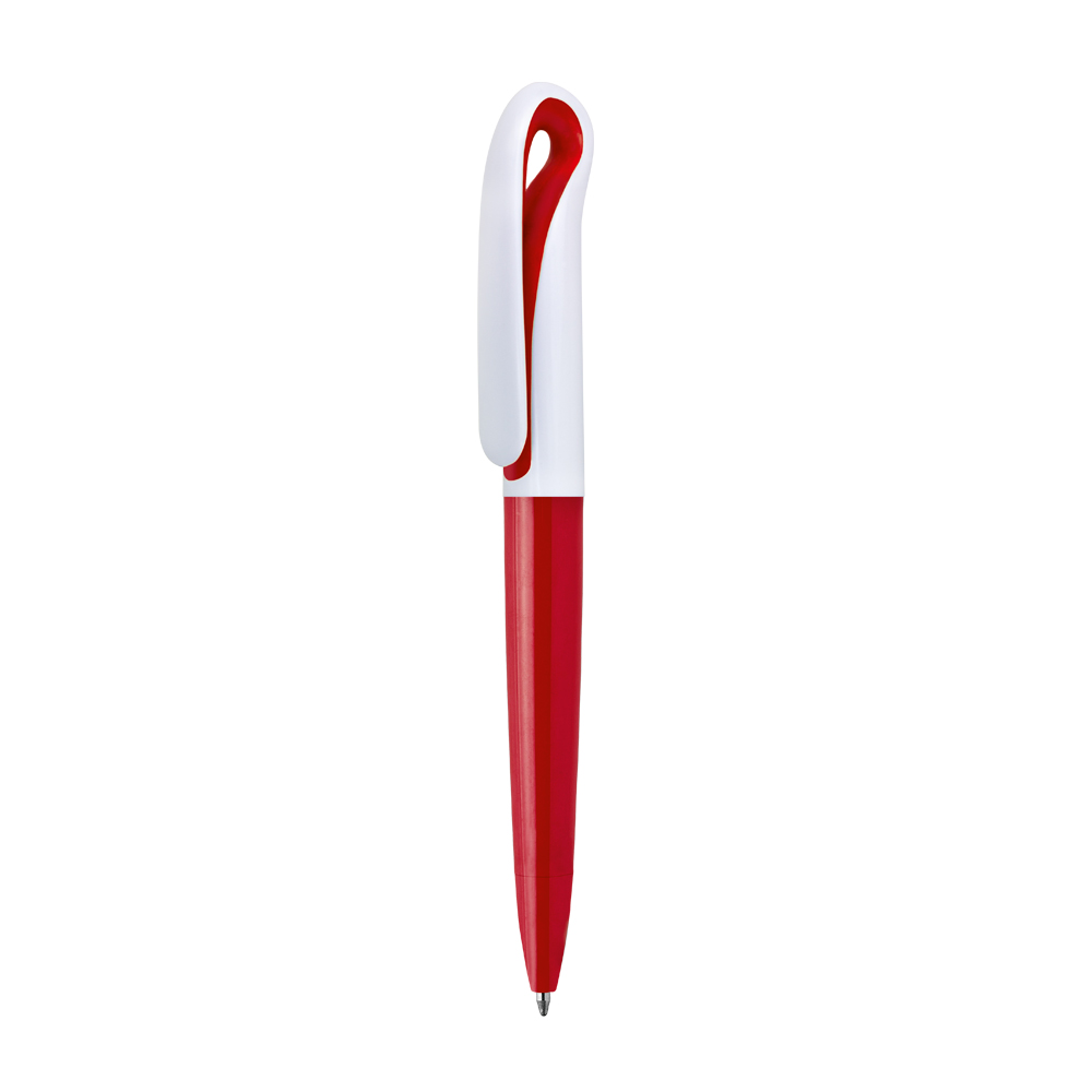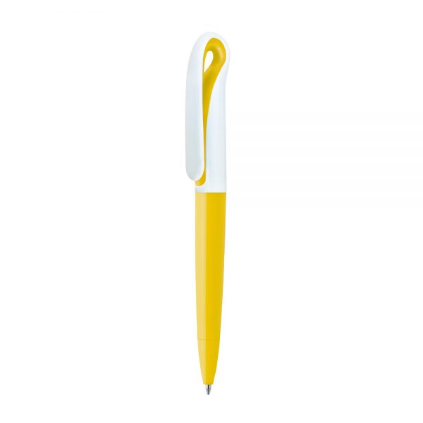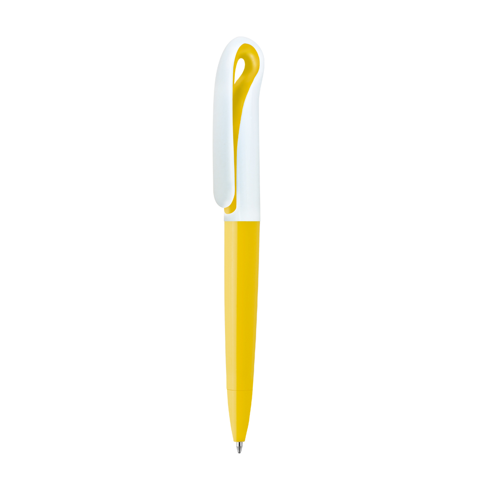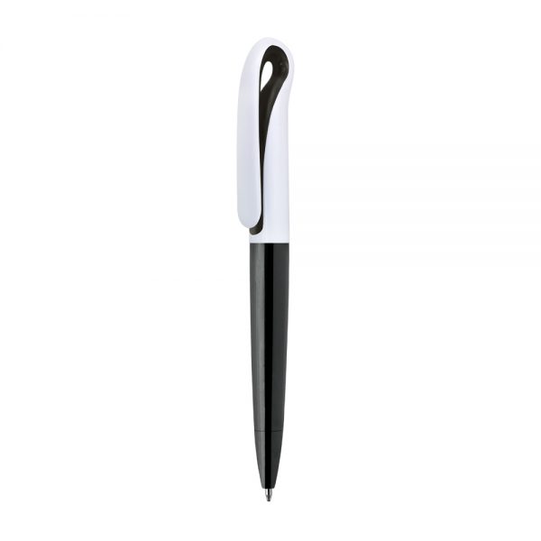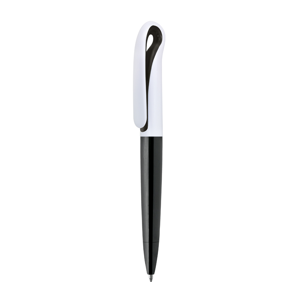 Esferográfica de plástico, Cisne. Escrita preta, sistema twist. Com um design diferente e moderno, conta com um detalhe colorido por dentro do clip. Ótima para dar o twist necessário à sua marca.