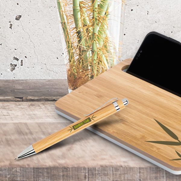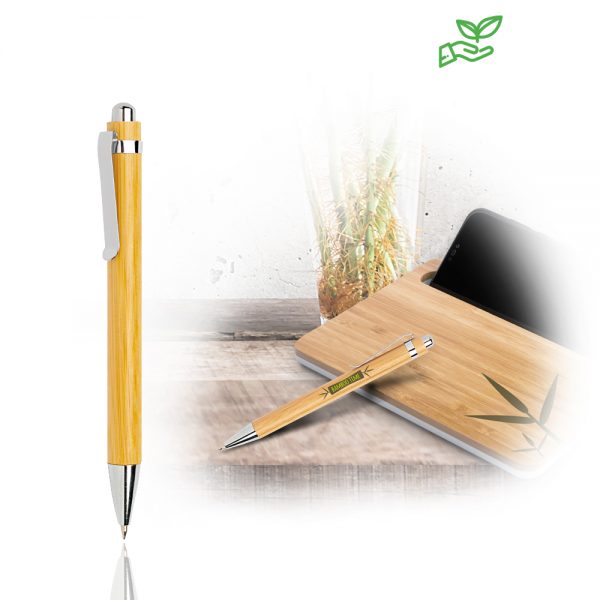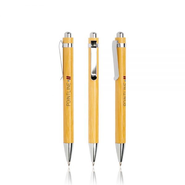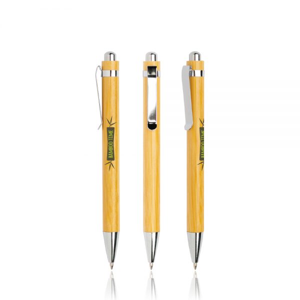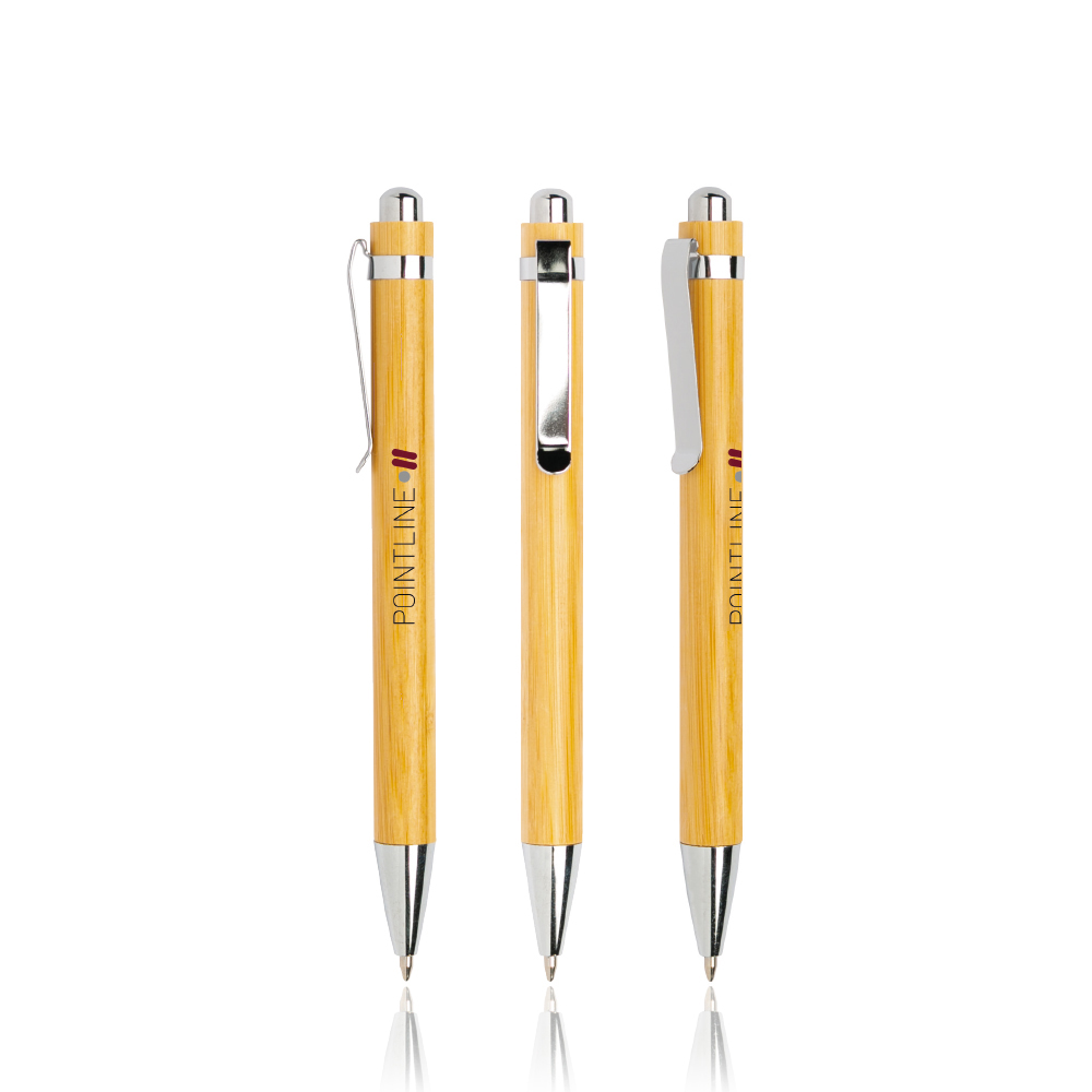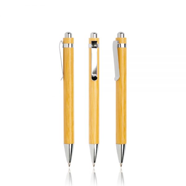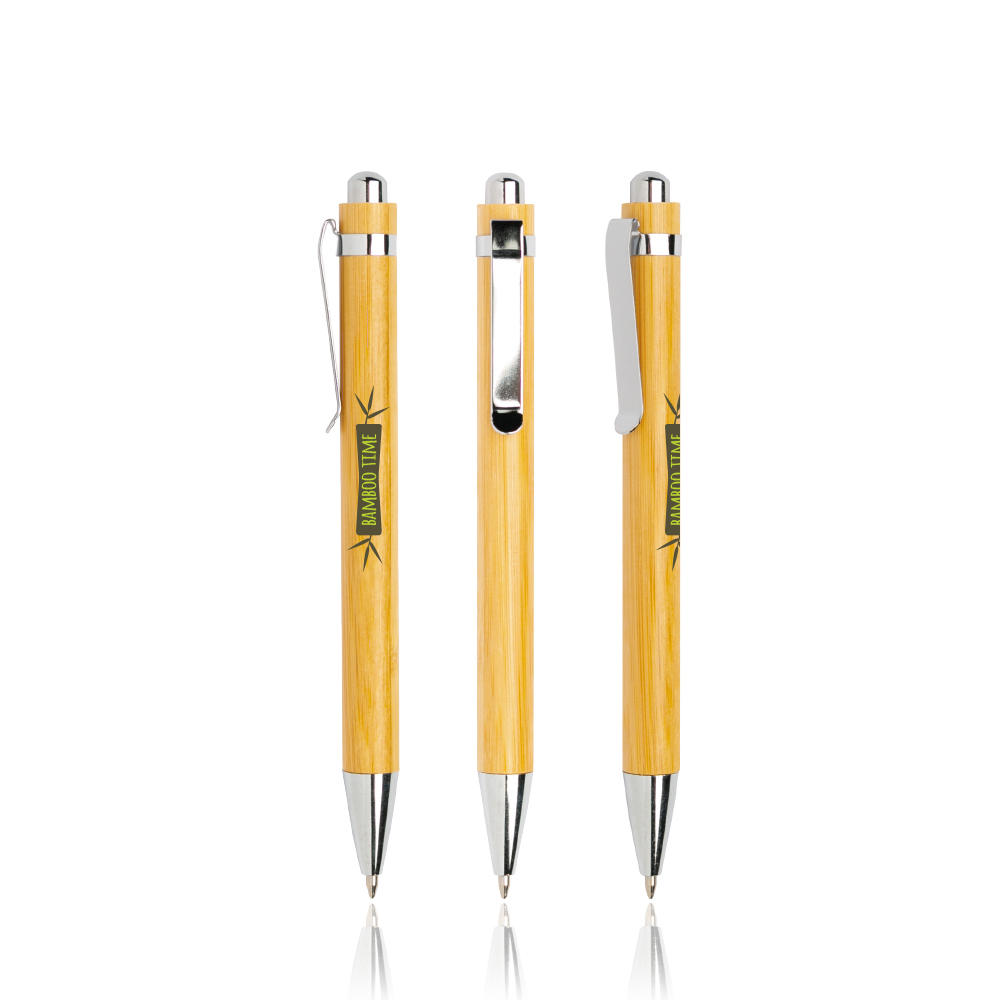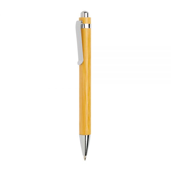 Bampen Esferográfica em bamboo, com clip metálico