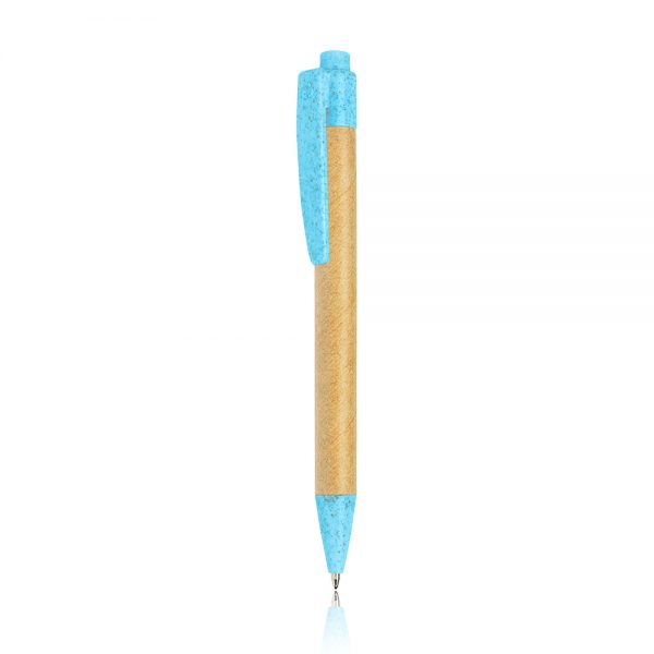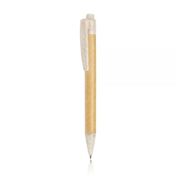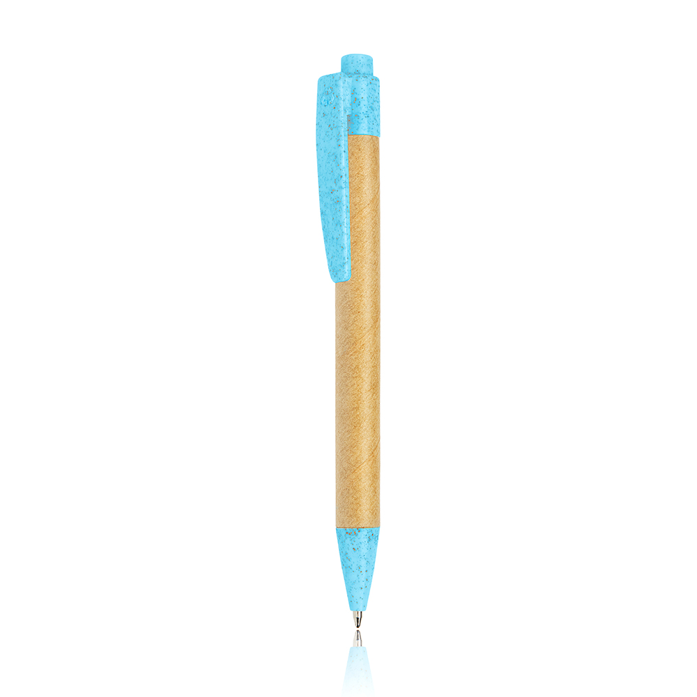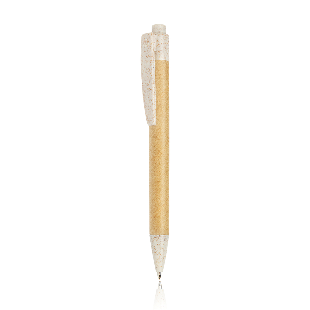Esferográfica eco-friendly, Sya oferece a harmonia entre o seu corpo em cartão e os detalhes em fibra de trigo. Esta esferográfica tem sistema pulsar e escrita preta