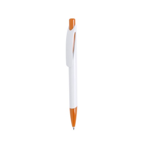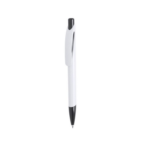 Caneta com um design bicolor ousado com acessórios em varias cores, um acabamento macio e branco sólido.
