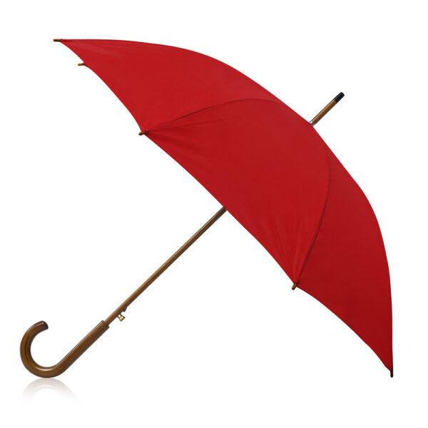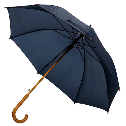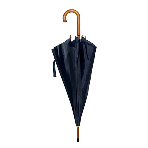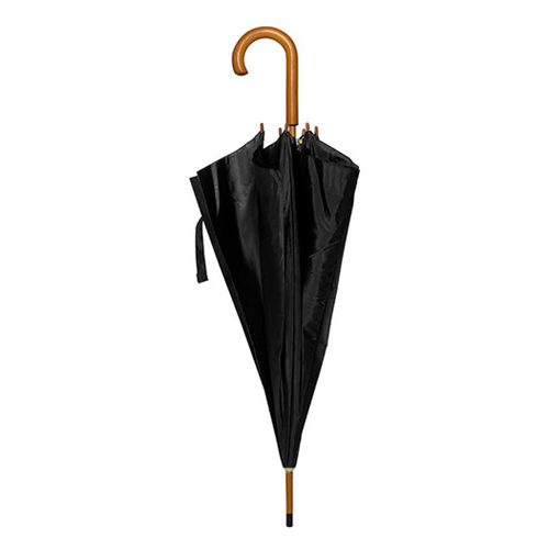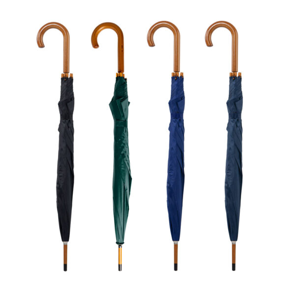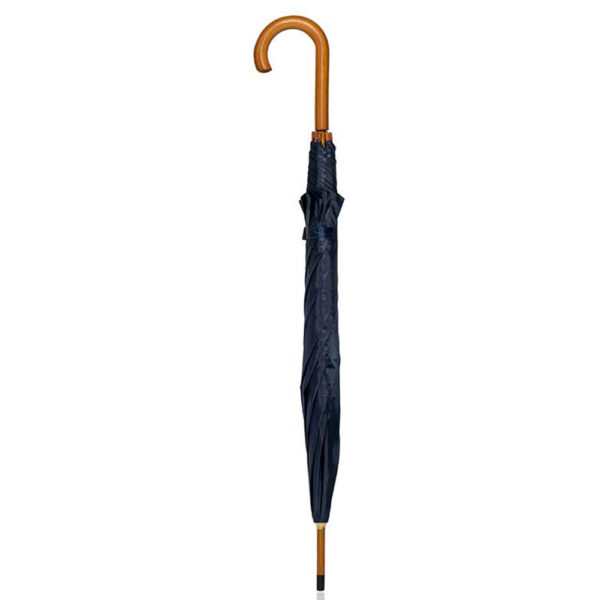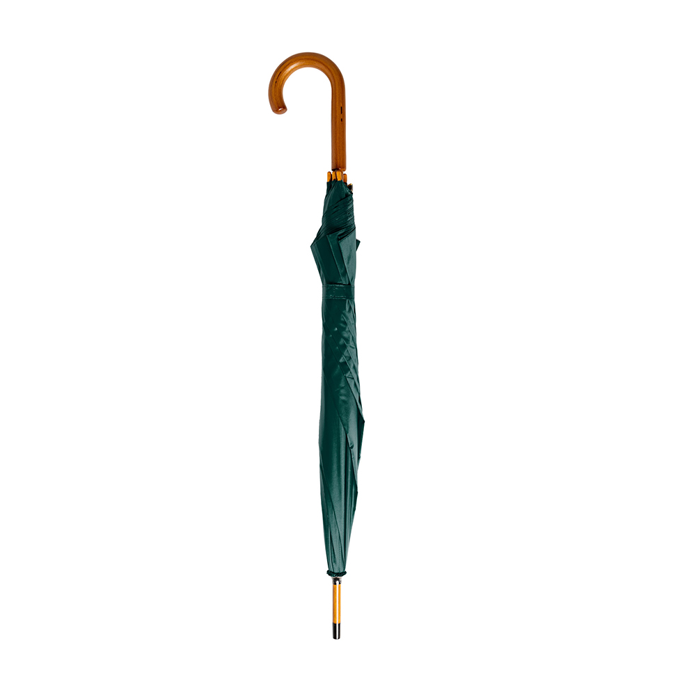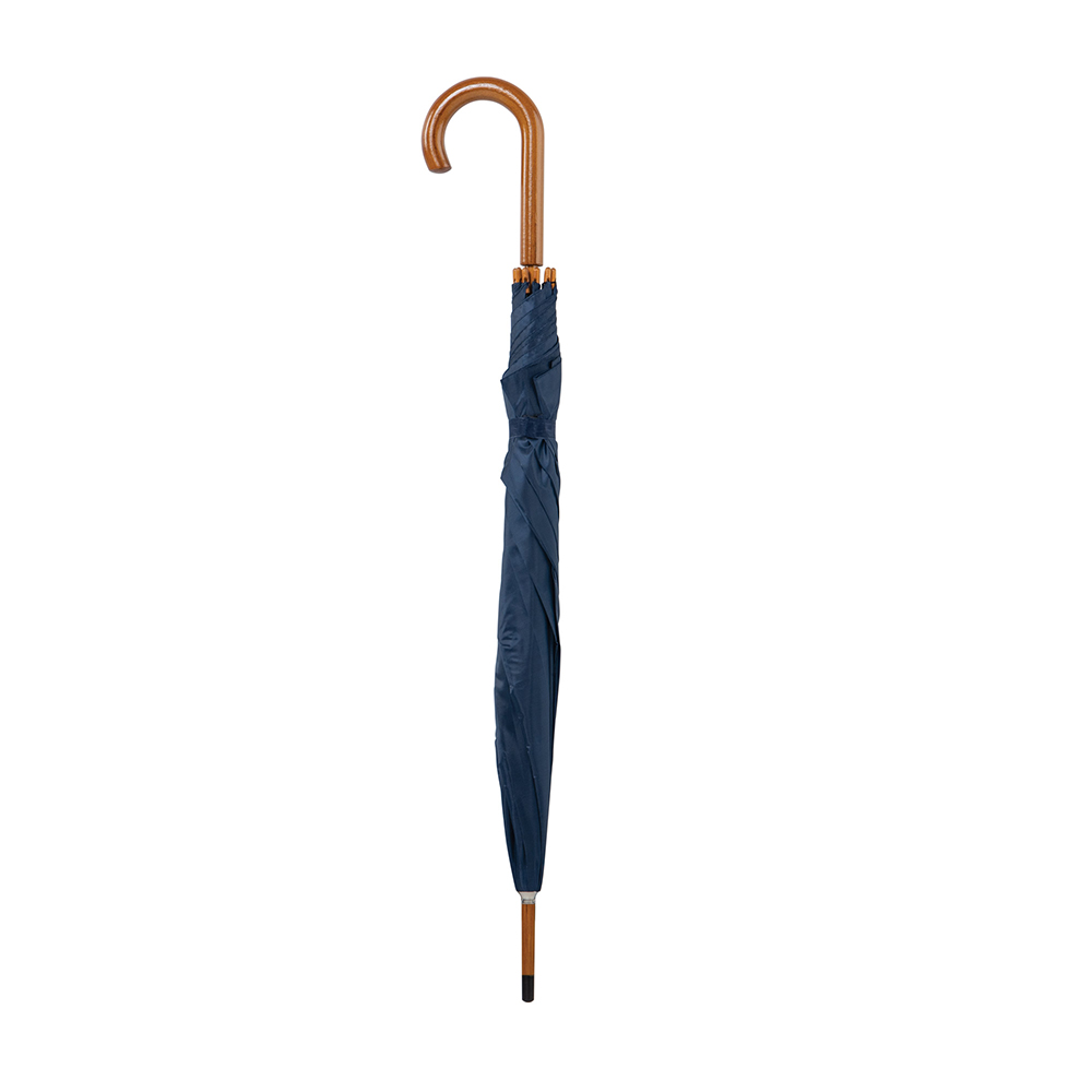 Guarda-chuva automático, em P-190T, cabo em madeira. Um guarda-chuva com abertura automática. Modelo clássico, com cabo de madeira e pega em “J”. Não seja apanhado desprevenido e fique com os seus clientes em todas as tempestades da vida.