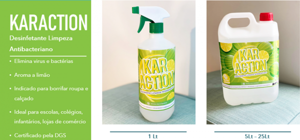 Produto para limpeza e desinfeção de superfícies diversas em escolas, escritórios, hotéis, instalações sanitárias.