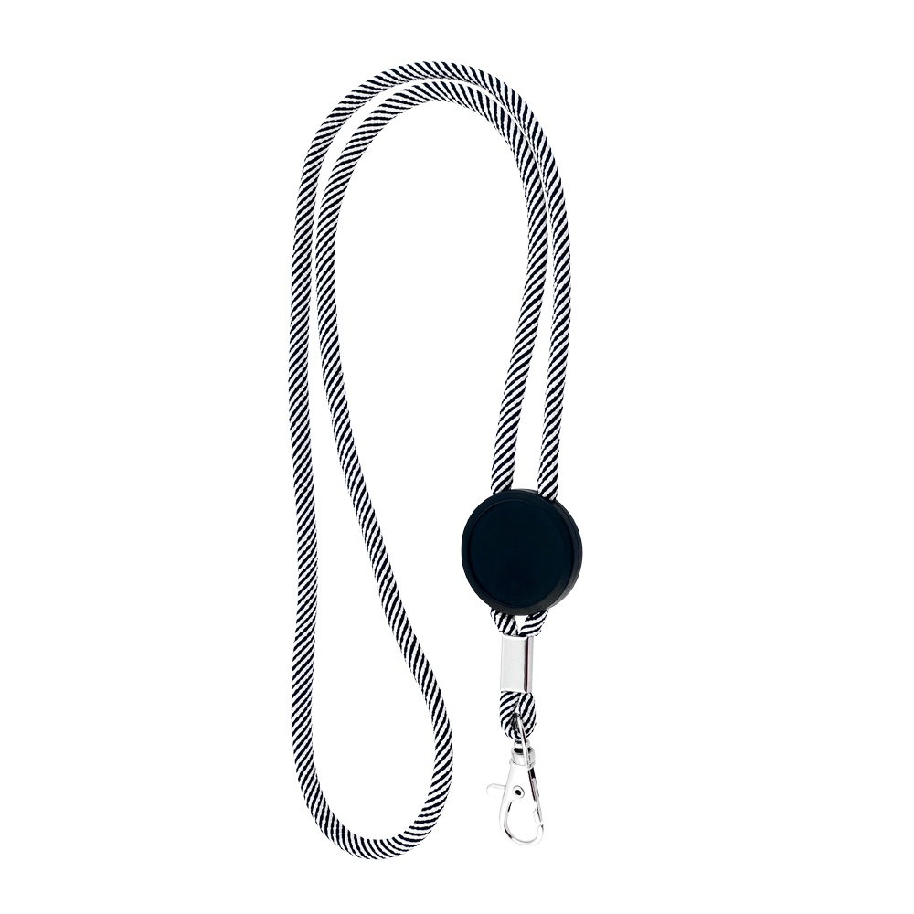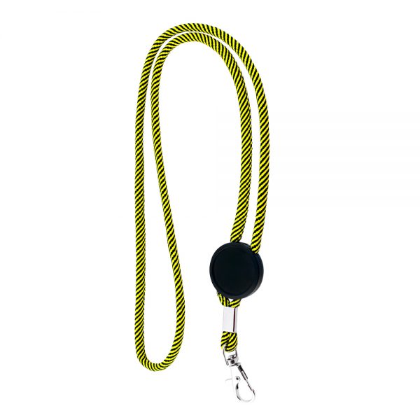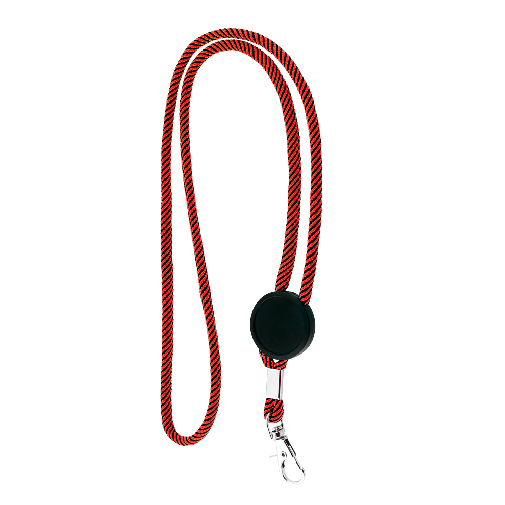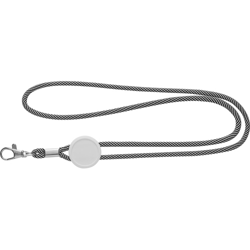 Lanyard tubular em poliéster, ajustável e mosquetão. Para além de uma gama extensa de cores, o que destaca esta fita tubular é o seu acessório que serve de ajustável e de base à sua gravação. Ideal para personalização com resina (370487).