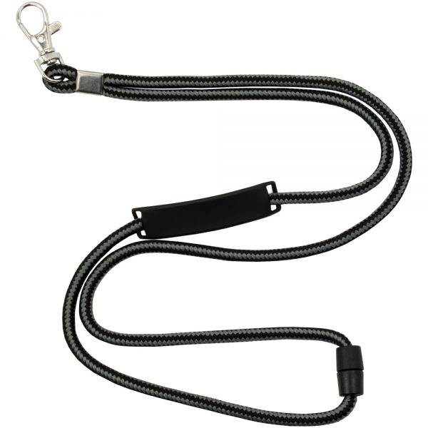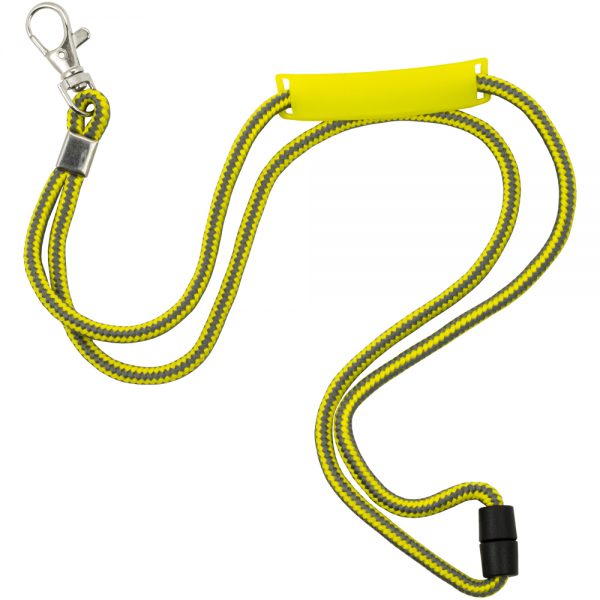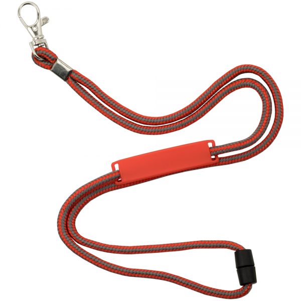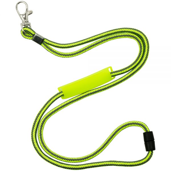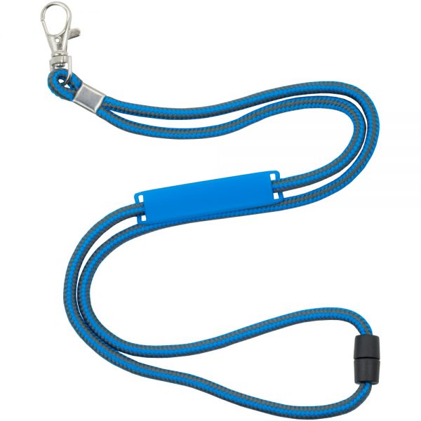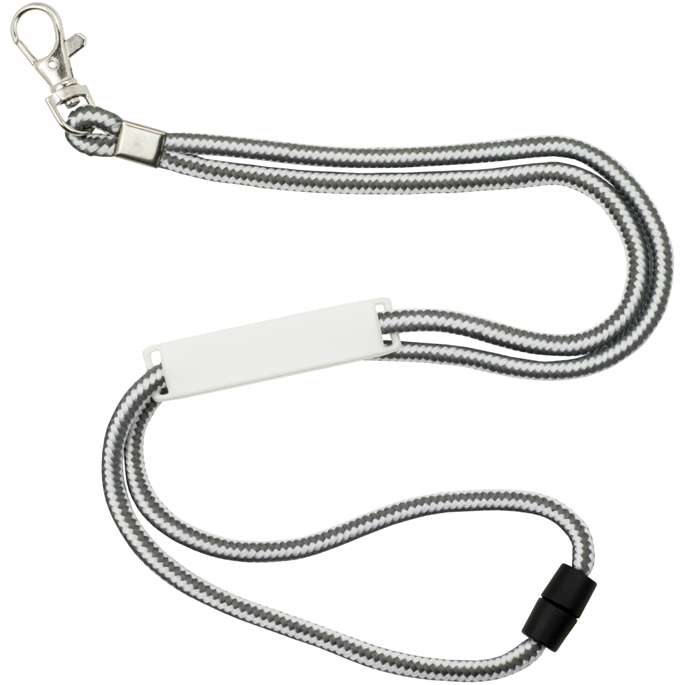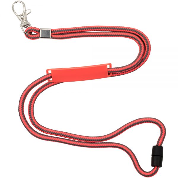 Ribbon Lanyard tubular em poliéster, com ajustável e fecho de segurança
