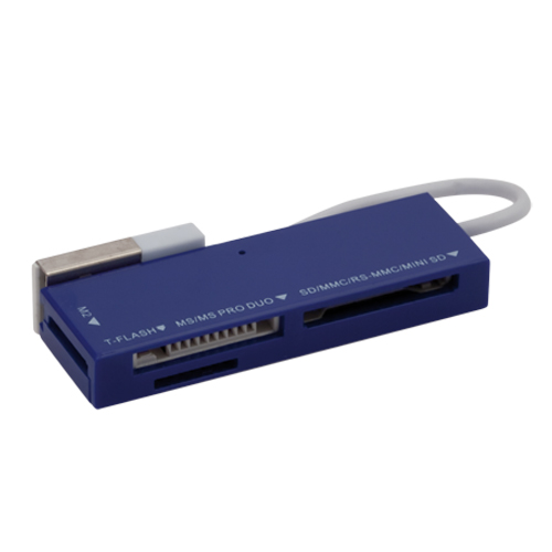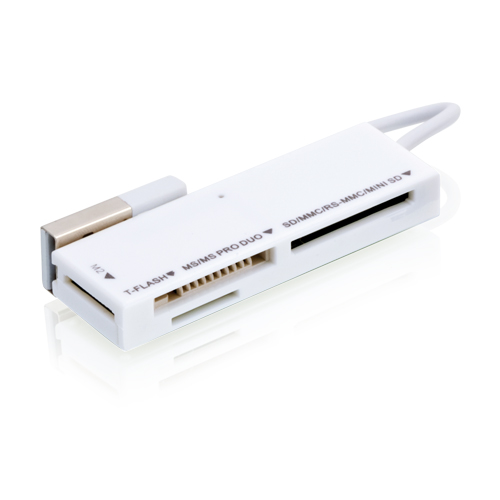 Completo leitor de cartões com conexão USB 2.0. Design quadrado, em várias cores e compatível com praticamente todos os formatos de cartão de memória do mercado: M2, MS Duo, MS Pro Duo, MS, MS Pro, MicroSD, MiniSD, RSmmC, SD, mmC. Apresentado em caixa individual.