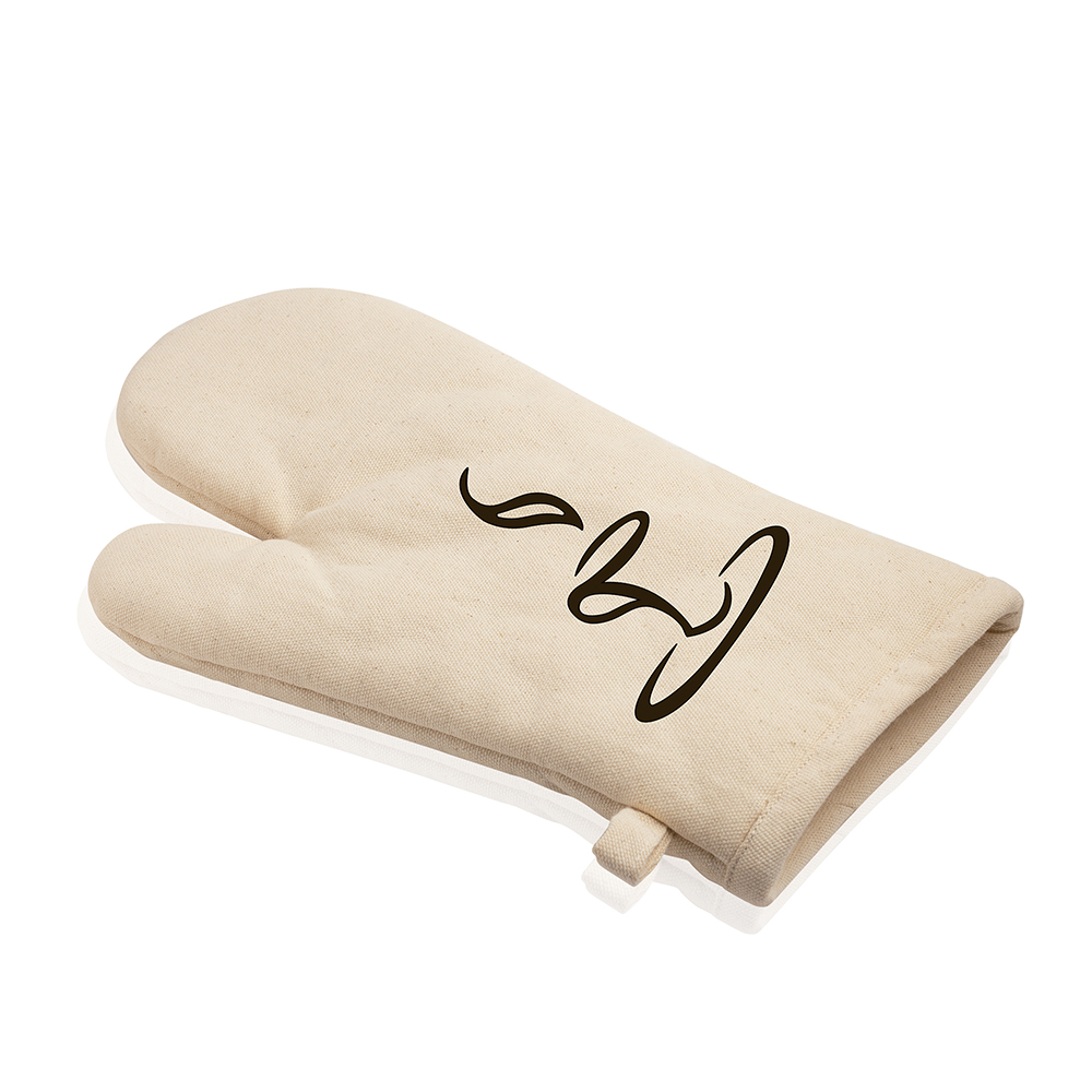 Luva de cozinha 100% algodão. Mesmo quando a criatividade está em voga na cozinha, a segurança deve vir sempre em primeiro lugar. Para evitar queimaduras quando retira o tacho do lume ou o tabuleiro do forno, pode contar com esta luva personalizável, feita em 100% algodão.