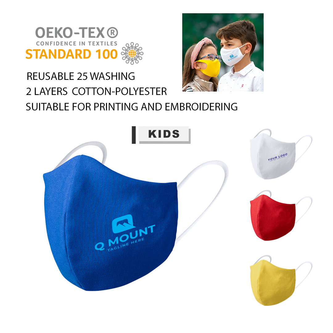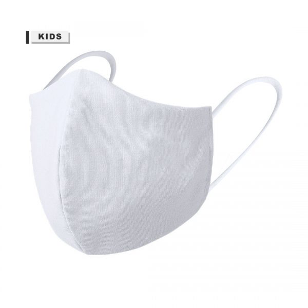 Fabricada em algodão e poliéster de dupla camada, com costura frontal ergonómica para um ajuste confortável e fitas elásticas para as orelhas em tecido hipoalergénico, com certificação OEKO-TEX Classe I.