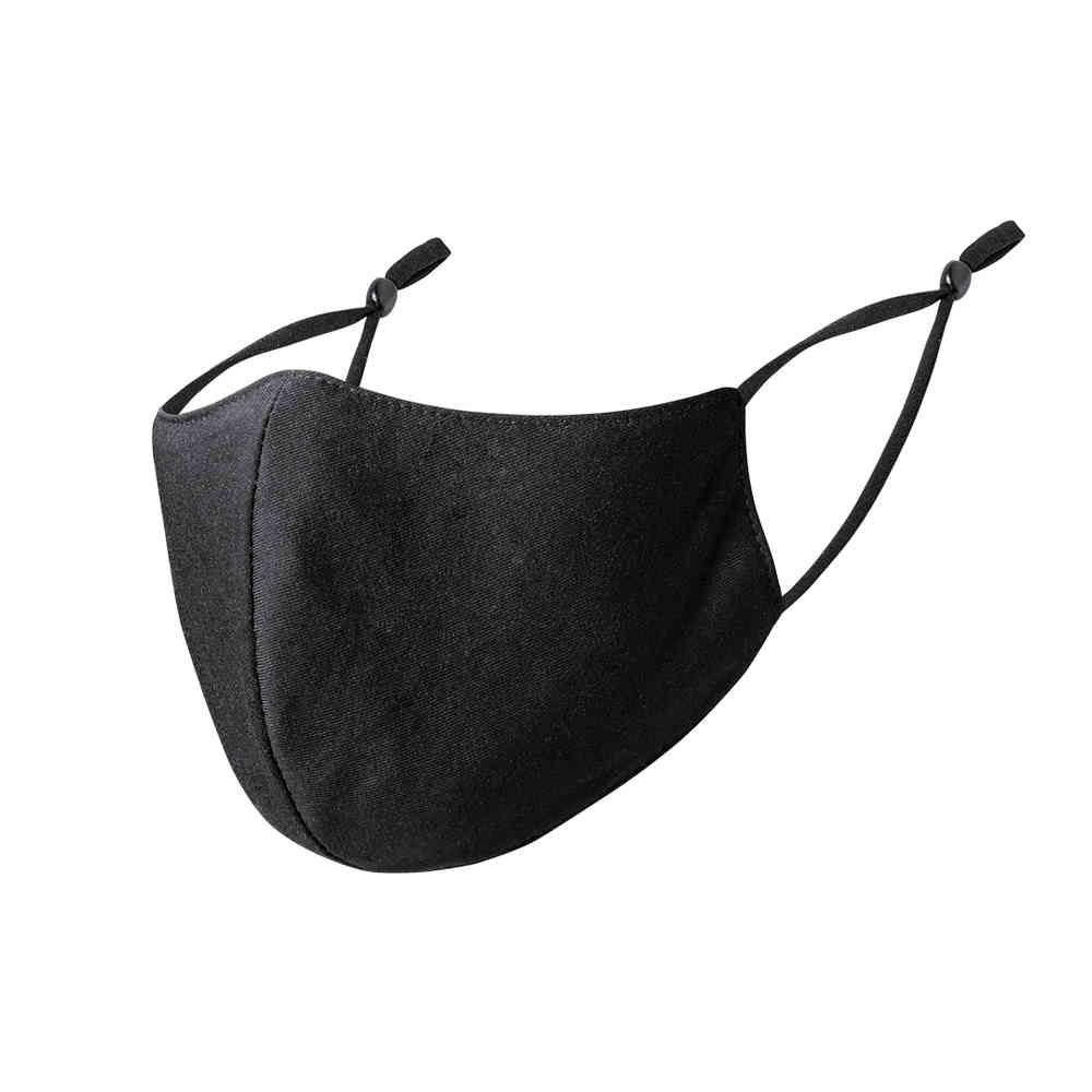 Máscara higiénica reutilizável. Fabricada em resistente poliéster de dulpa camada, com costura frontal ergonómica para um cómodo ajuste na boca e nariz. Inclui ajustadores em fitas elásticas para as orelhas. Disponível numa gama variada de cores e apresentada em bolsa individual.