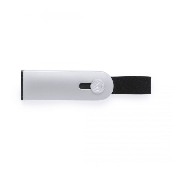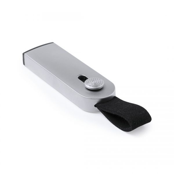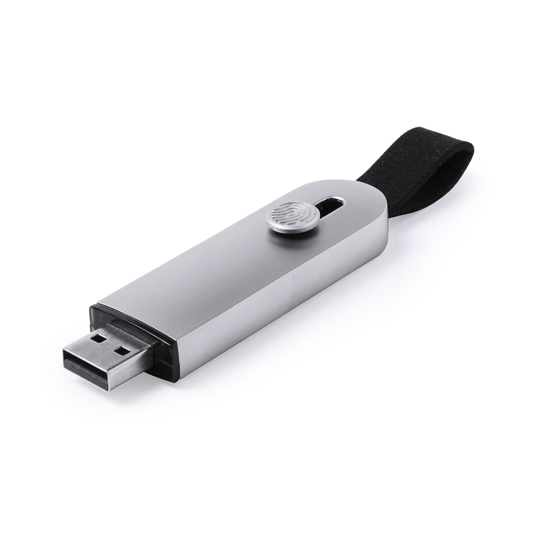 Memória USB de 16GB de capacidade. Com corpo metálico de acabamento semi-mate e elegante mecanismo retrátil. Com pega de couro preto e apresentada em caixa de cartão preta individual com interior recortado em espuma macia.