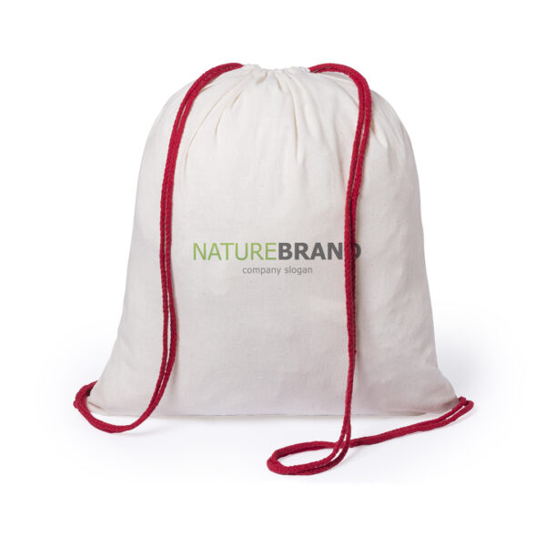 Mochila de cordões da linha Nature 100% algodão 120g / m2. Cor natural e cordões entrançados numa variedade de cores. Cantos reforçados.