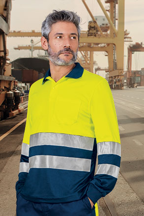 Polo térmico de Alta Visibilidade bicolor de manga comprida e bolso.