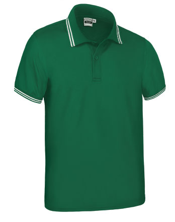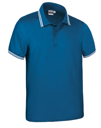100% poliéster 170 grs/m?. Tecido transpirável e de secado rápido. Gola polo e remate de mangas em tricô. Desenho com bandas finas em contraste com gola e mangas.