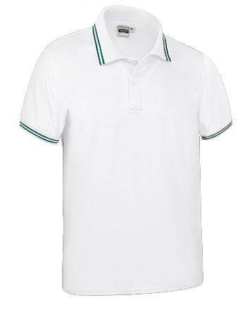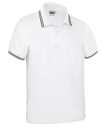 100% poliéster 170 grs/m?. Tecido transpirável e de secado rápido. Gola polo e remate de mangas em tricô. Desenho com bandas em contraste com diferentes cores em gola e mangas.
