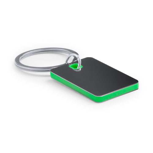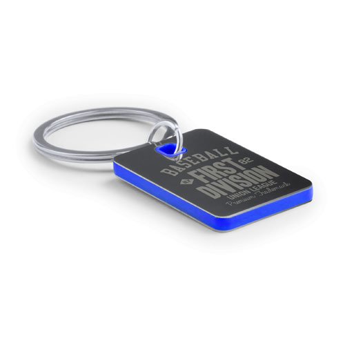 Porta-chaves de aço inoxidável em design bicolor, de várias cores e especialmente concebido para impressão a laser.