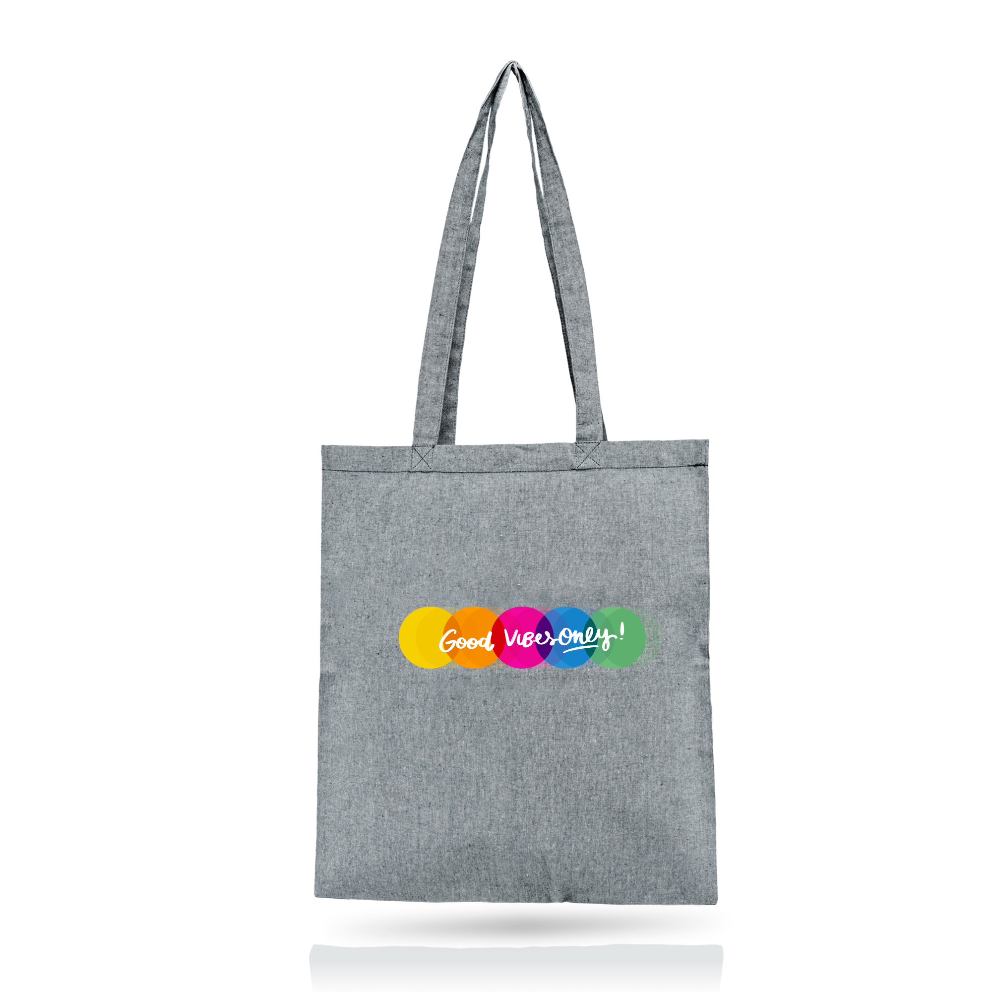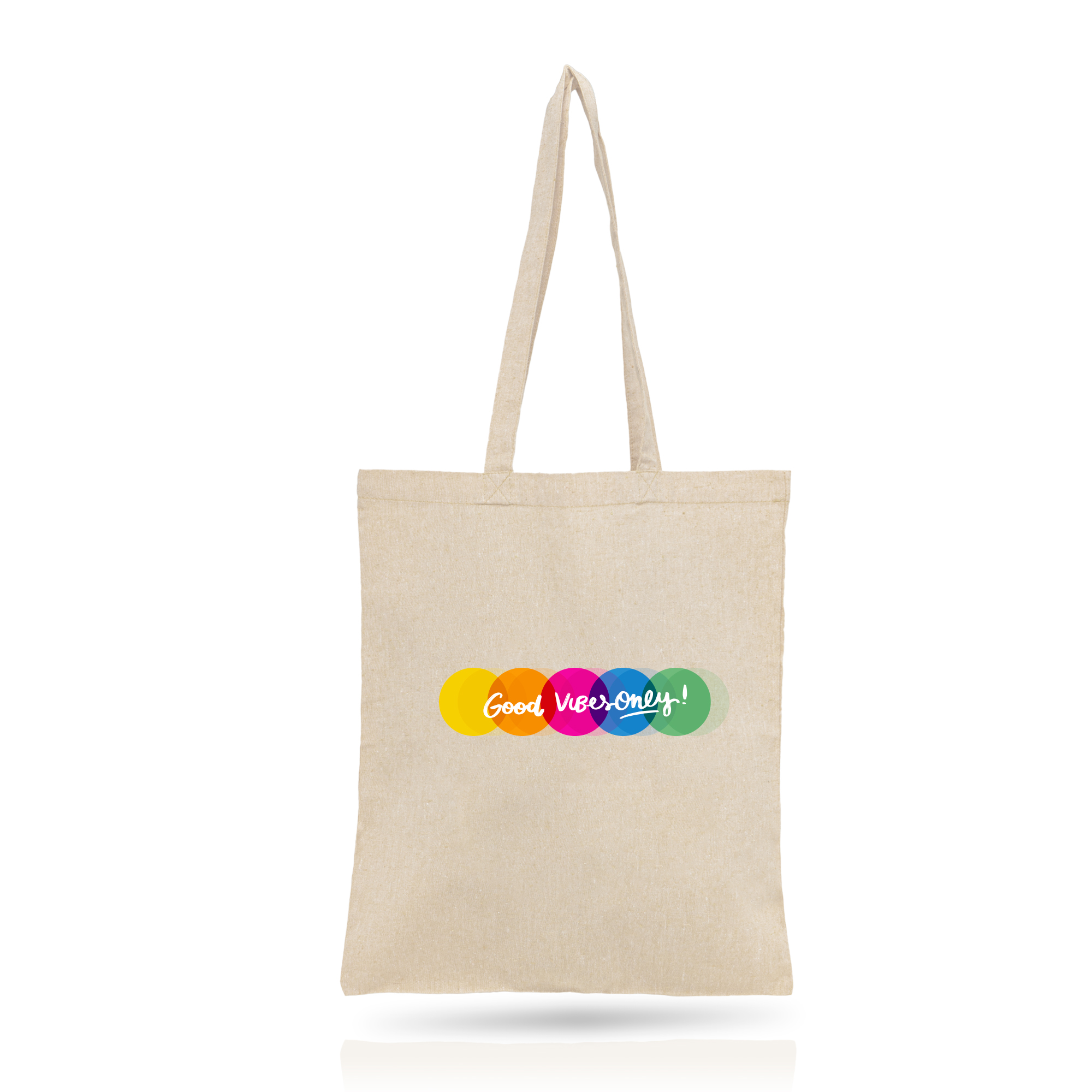 Cores mescladas e modernas, este saco de algodão reciclado vai elevar sua marca a outro nível.