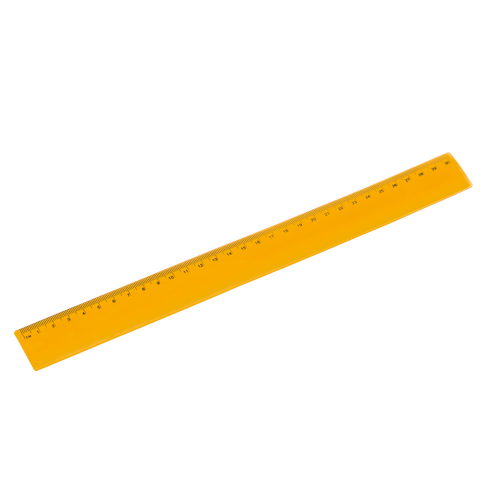 Regra flexível de 30cm, com corpo transparente em cores vivas.