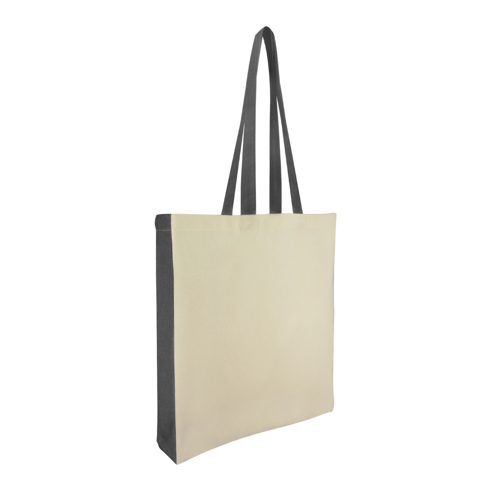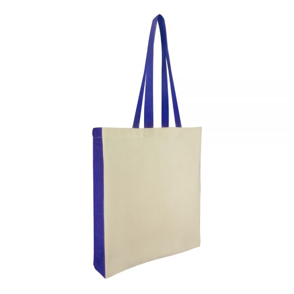 Um saco ecofriendly de 100% algodão e macio ao toque. Combinação perfeita entre a cor natural e o pormenor de cor no fole base e asas. Perfeito para personalizar. Proteja o ambiente com sacos reutilizáveis.