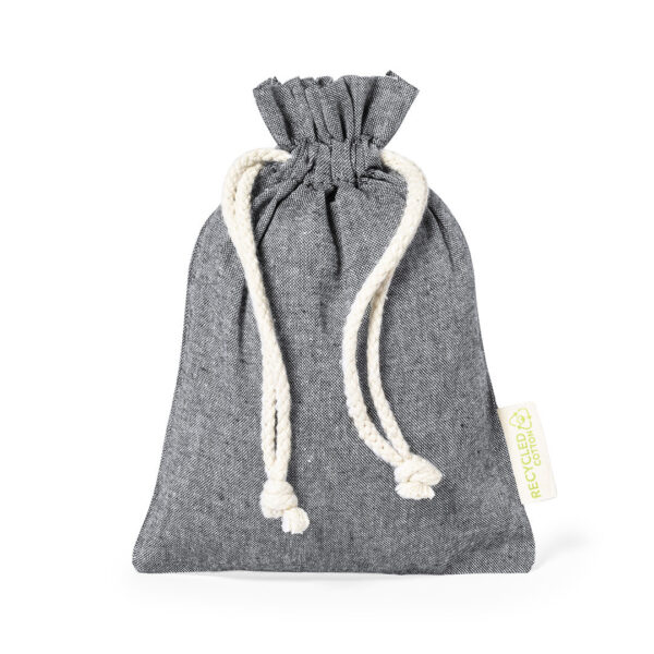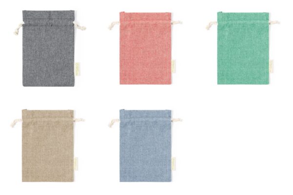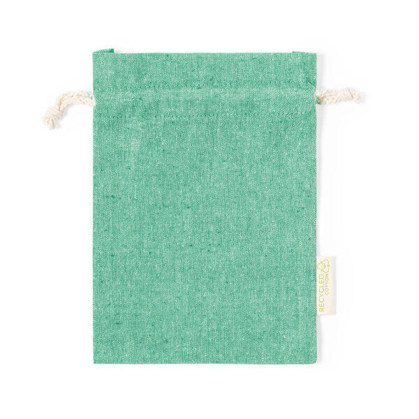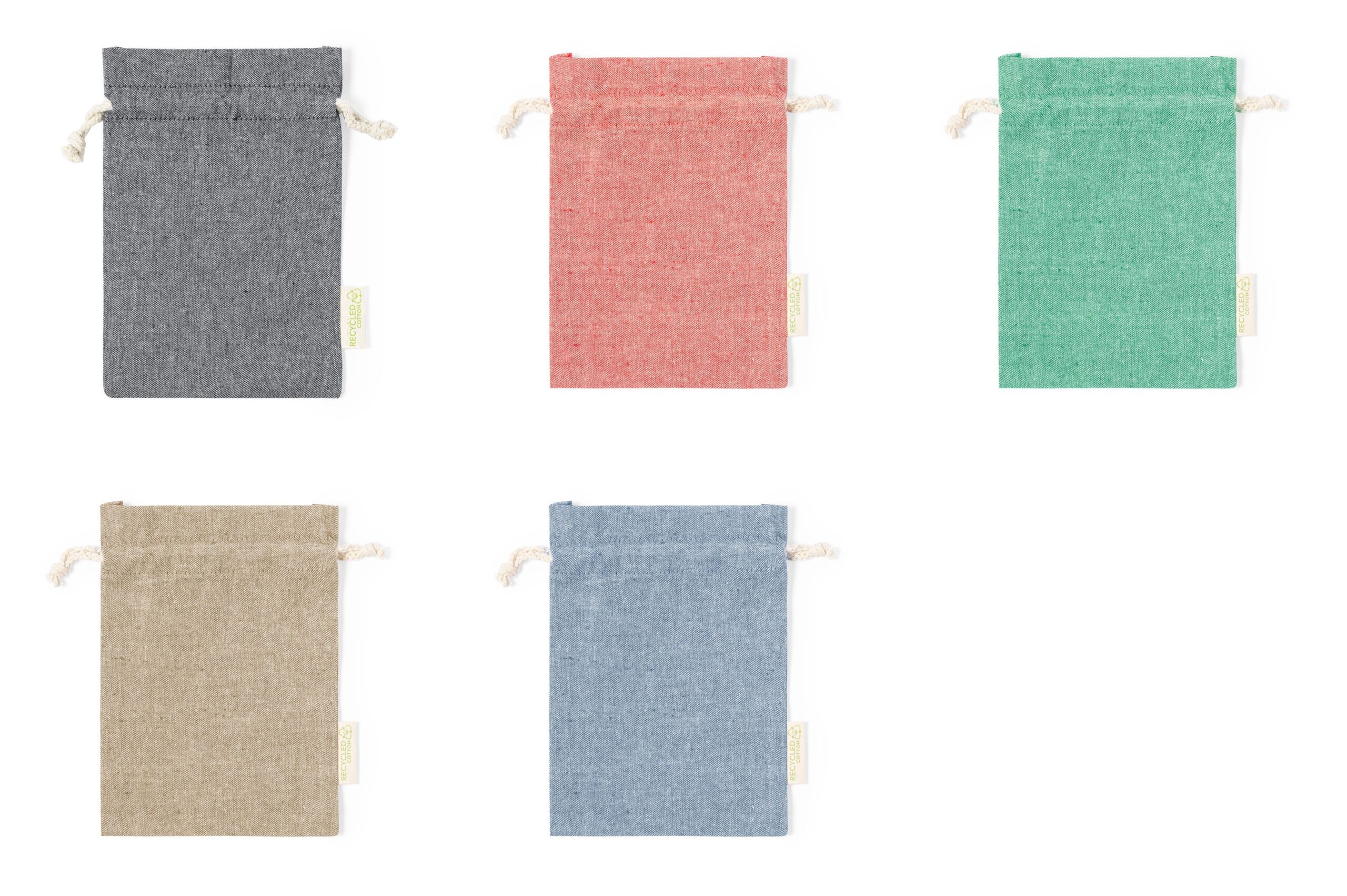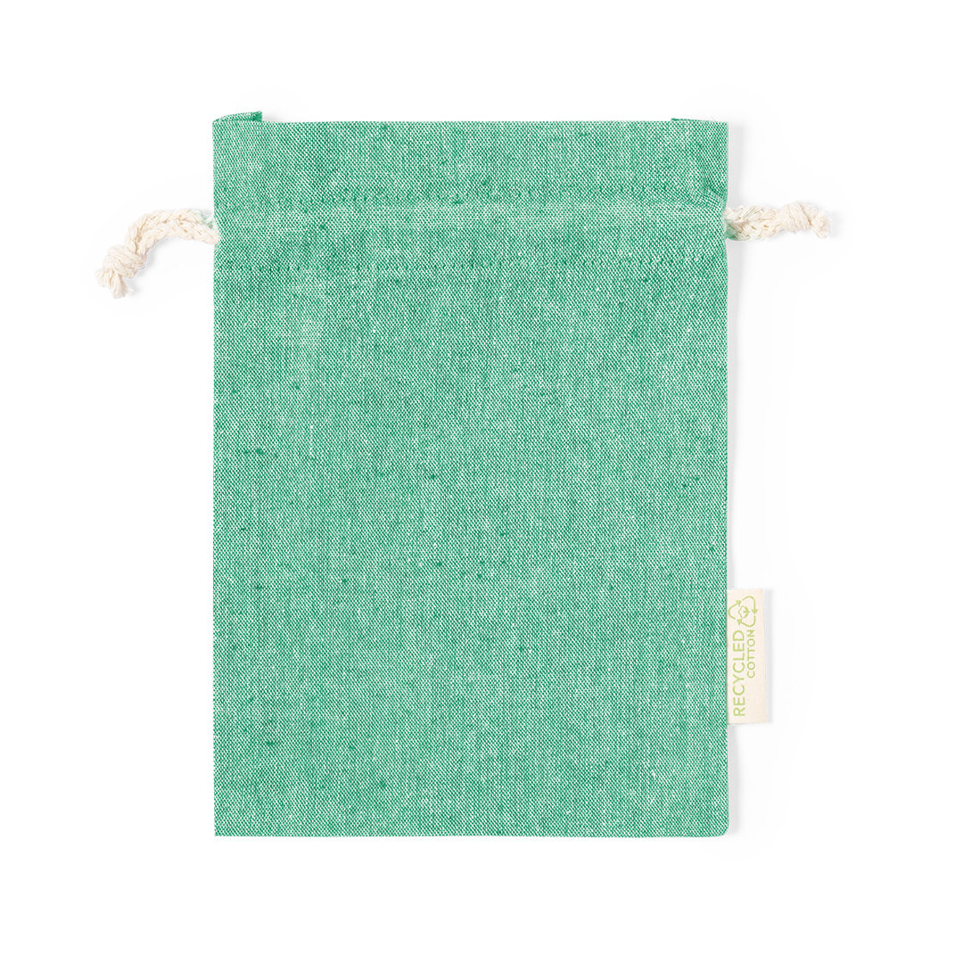 Saco eco-friendly em resistente material 100% algodão reciclado GRS de 120g/m2. Certificação GRS (Global Recycled Standard / Standard de Reciclagem Global), que garante a origem reciclada do material usado para fabricar o produto. Fecho de cordão de algodão e acabamento cosido, inclui etiqueta exterior com distintivo algodão reciclado.