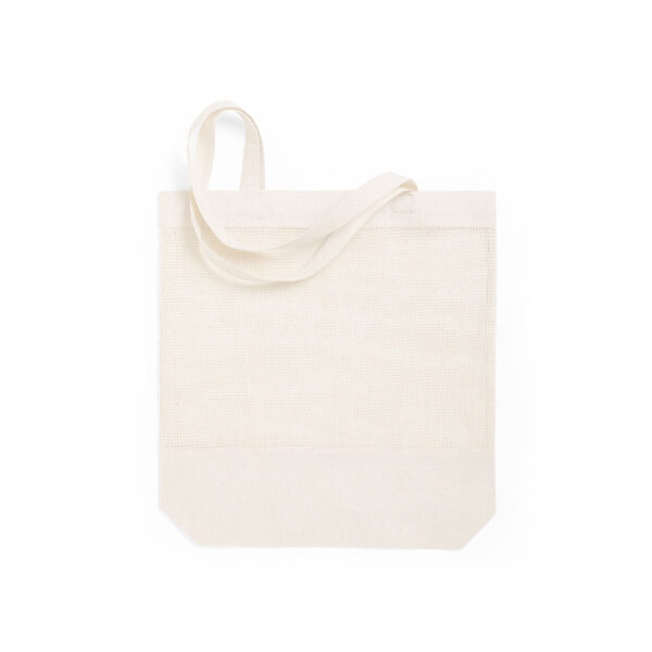 Saco de linha nature em resistente algodão 170g / m2 e original acabamento de rede. Alças compridas de algodão, 60 cm e reforçadas. Acabamento cosido e resistência até 8kg de peso.
