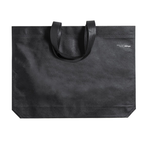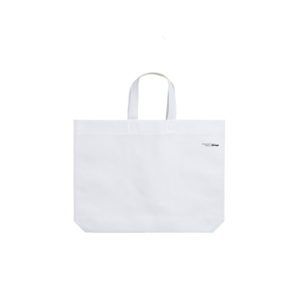 Saco da linha nature, fabricado em non-woven reciclado de 70g/m2. De fabricação europeia, com acabamento termoselado, com fole, alças compridas e distintivo eco/made in no saco.