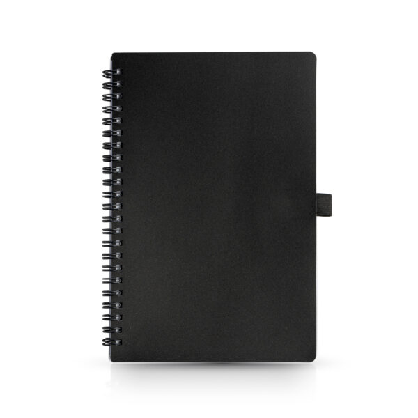 Este bloco contém 140 páginas pautadas e um elástico para suporte de esferográfica.