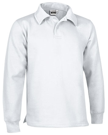 65% poliéster, 35% algodão. Felpa cardada dentro 295 grs/m2. Gola polo felpa. Carcela 2 botões. Punhos canelados. Aberturas laterais. Dupla costura nos ombros, mangas e punhos.