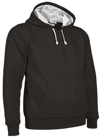 100% poliéster. Tecido felpa 280 grs/m2. Acabamento cardado interior. Capucho duplo tecido. Bolso canguru dianteiro. Cordão ajustável no capucho. Punhos e baixo canelado. Presponto em mangas, punhos e cintura.