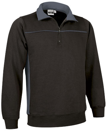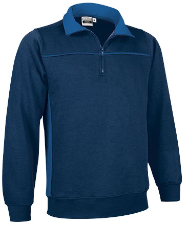 Sweat -shirt THUNDER 65% poliéster, 35% algodão. Felpa cardada dentro 310 grs/m2. Gola alta com meio fecho. Peito com vivo. Corpo com bandais laterais. Punhos e baixo canelado. Dupla costura nos ombros, mangas, punhos e cintura.